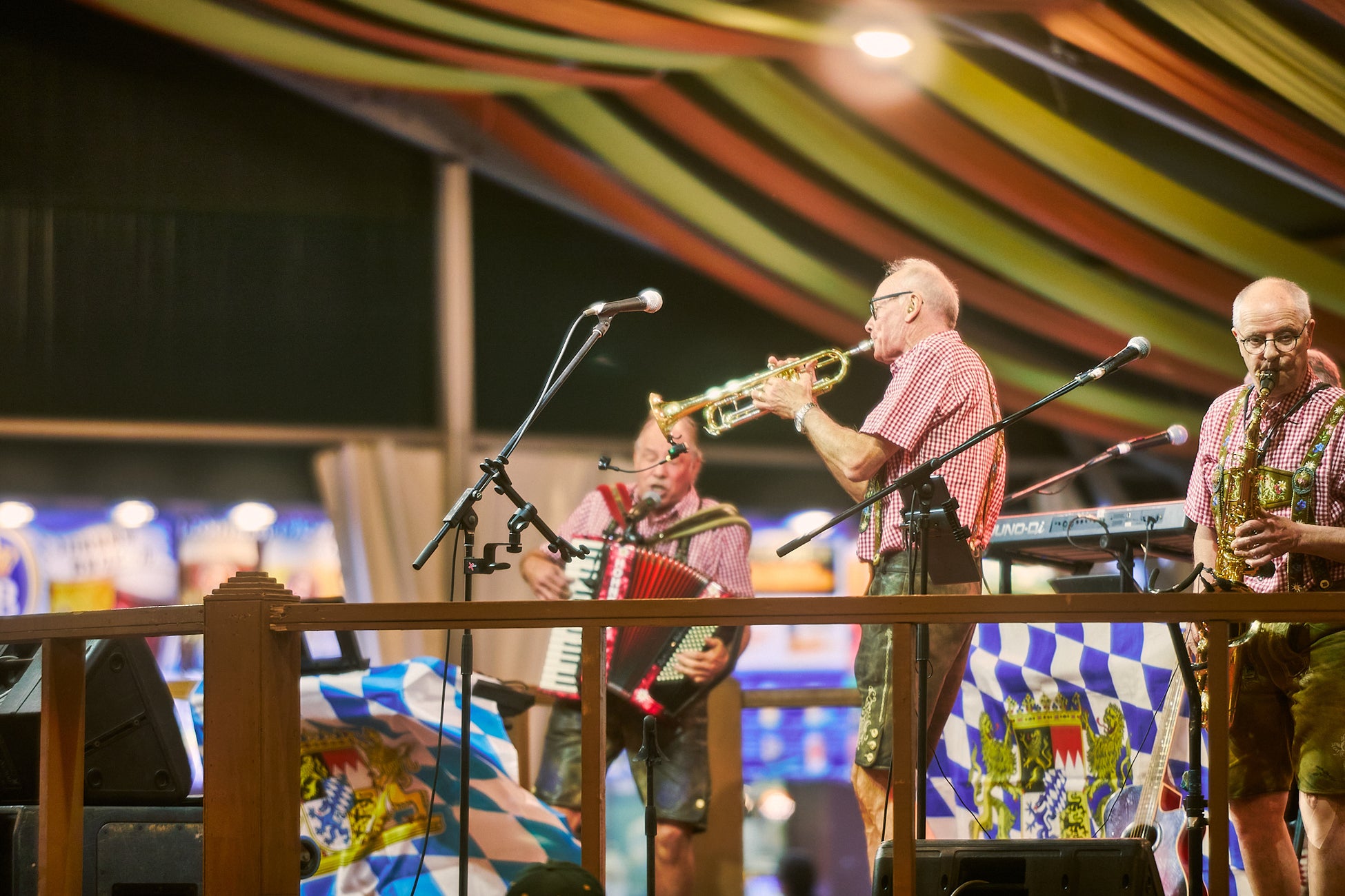 メイン会場の大型テント内でドイツ楽団「ヴォーホー&カレンダーバンド」が本場スタイルの生演奏で盛り上げます。歌って、踊って、プロースト(乾杯)!この熱気をぜひご体感ください。