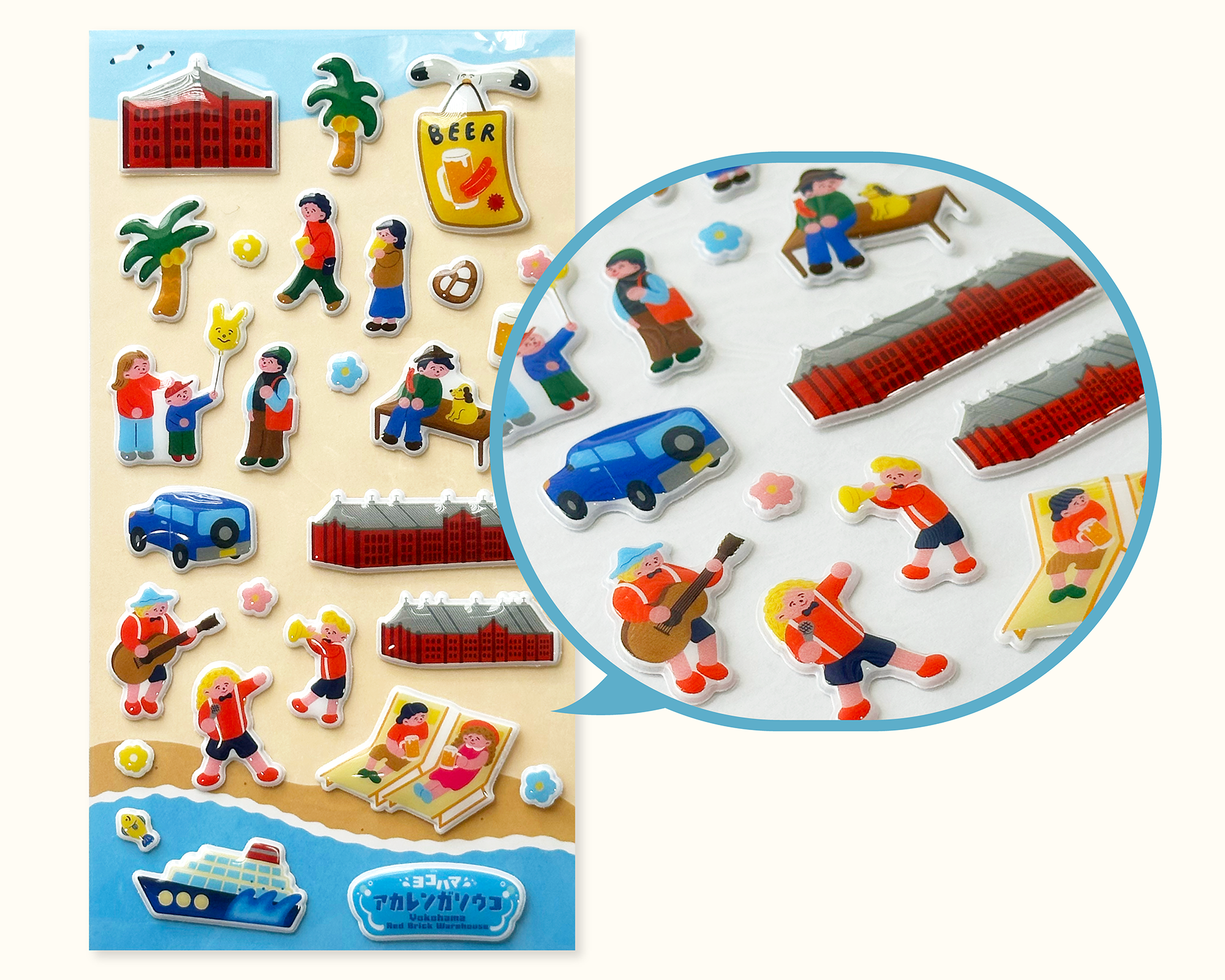 4月29日(水・祝)~数量限定で、横浜赤レンガ倉庫1・2号館内の対象店舗で1会計につき3,000円以上(税込)お買い上げのお客様に、イベントキービジュアルのデザインをあしらった「横浜赤レンガオリジナル ぷっくりシール」をお会計時にプレゼント!今大人気の半立体シールを横浜赤レンガ倉庫を訪れた思い出としてぜひお持ち帰りください。