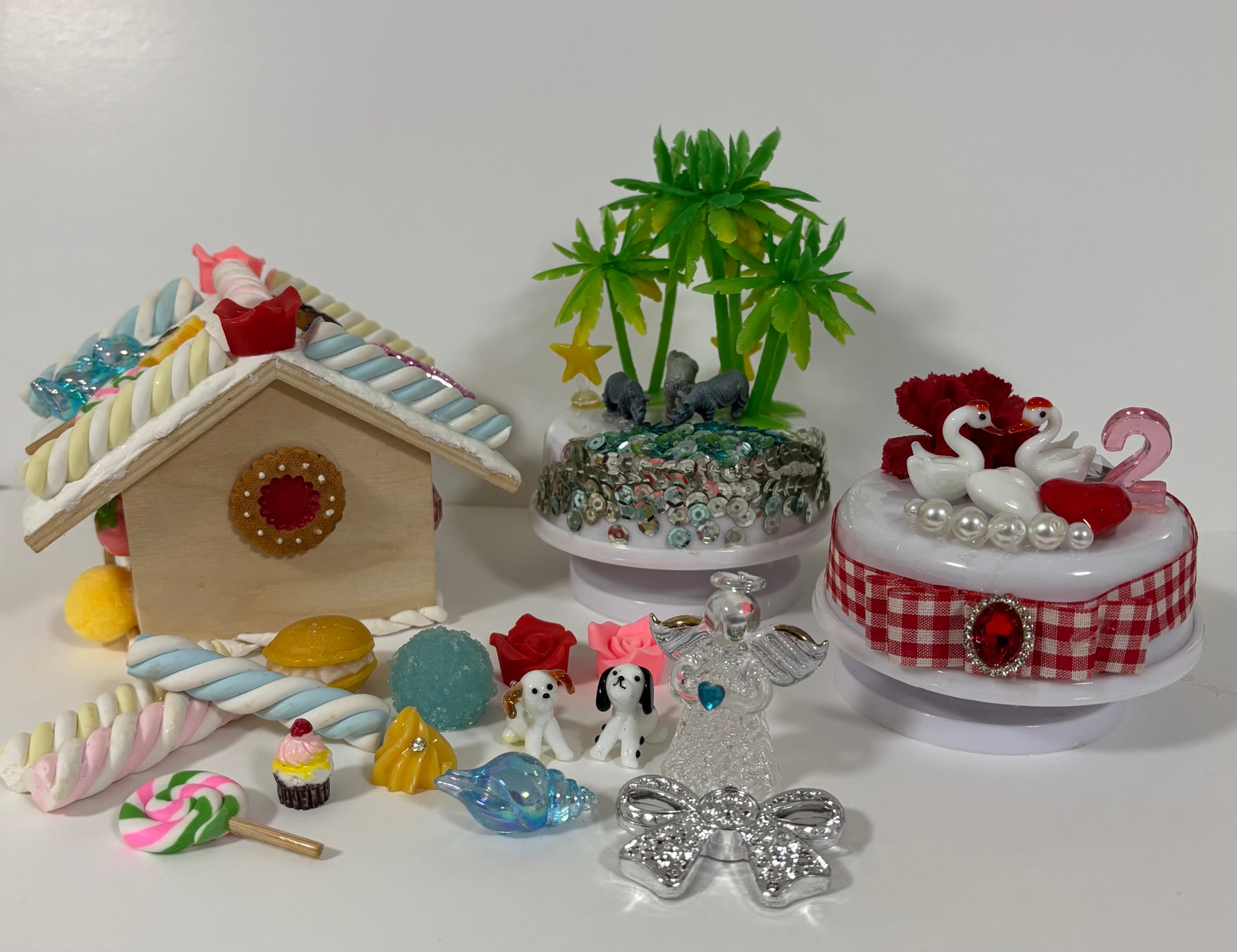 お菓子の家は屋根を取ると小物入れになります。回転オルゴールは自由な発想でパーツを選んで創作をお楽しみいただけます。