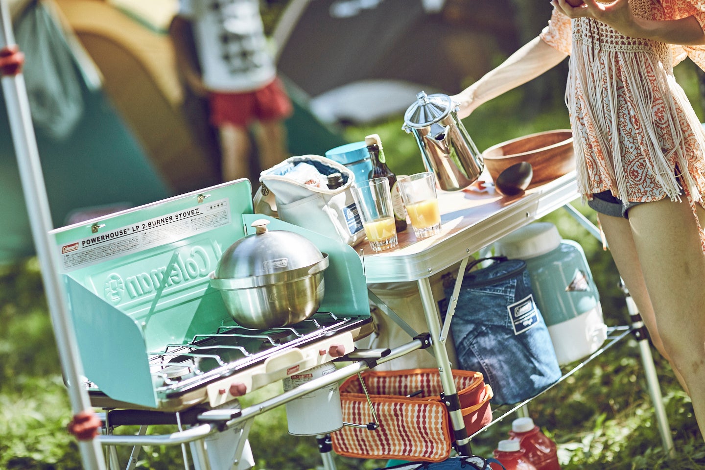 今回、デイキャンプをより盛り上げるアイテムとして、コールマンのアウトドアグッズをご用意しました。スモーカー(燻製器)やグリル、テーブルウェアなど本格的なアウトドアギアを使用し、キャンプならではの“キャンプ飯”をより美味しく味わっていただけます。