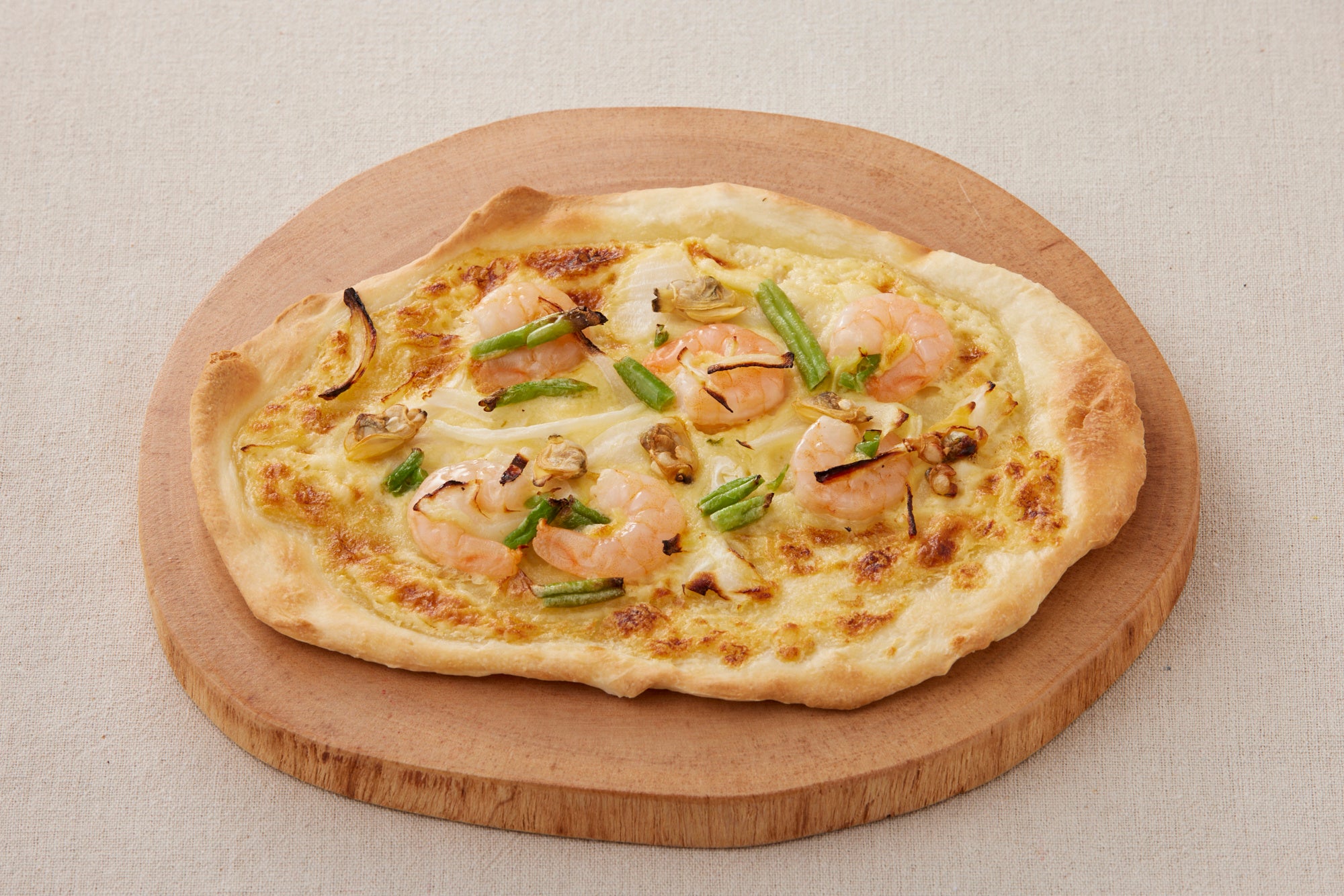 ドイツスタイルピザが登場!春が旬のアサリ・新玉ねぎをたっぷりと使用したシーフードグラタンを、石窯で焼き上げた極薄生地のドイツスタイルピザをご用意しました。生地・ソースすべて丁寧に一つひとつ手作りしました。