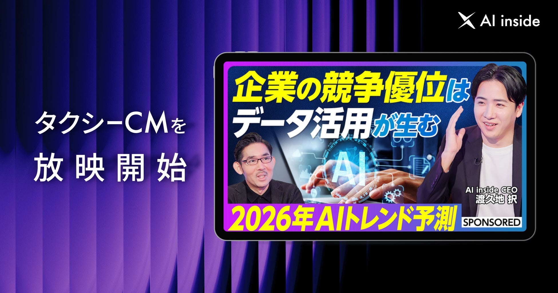 AI inside 株式会社(本社:東京都港区、代表取締役社長CEO:渡久地 択、以下「AI inside」)は、2025年10月27日より首都圏を中心に、 AGI時代を見据えたデータ整備や活用の必要性を広く発信するタクシー広告の放映を開始いたします。