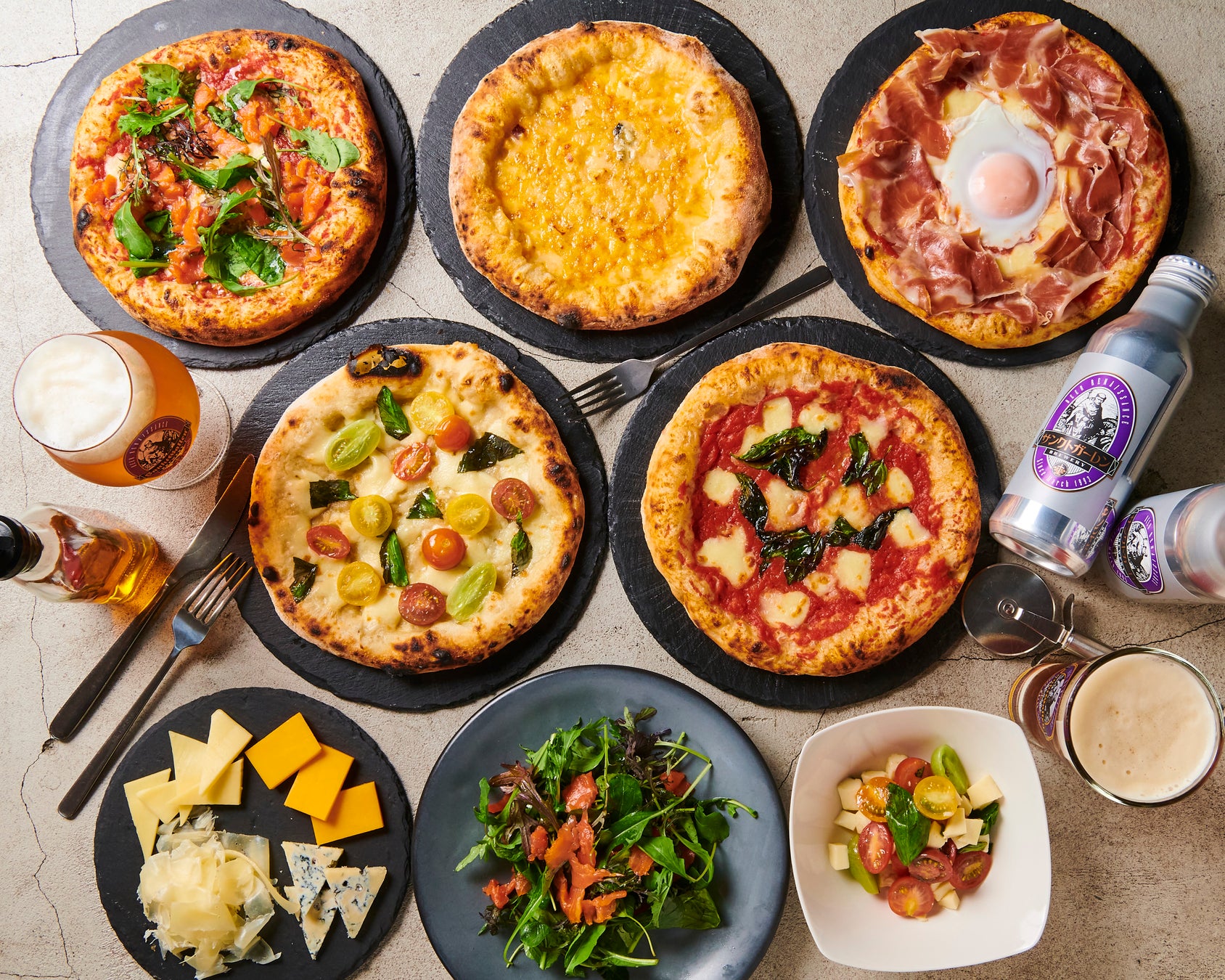 フードは注文を頂いてから1枚1枚生地をのばして石窯で焼き上げる本格ピザの他、10種を超える世界のチーズなどをご提供しています。