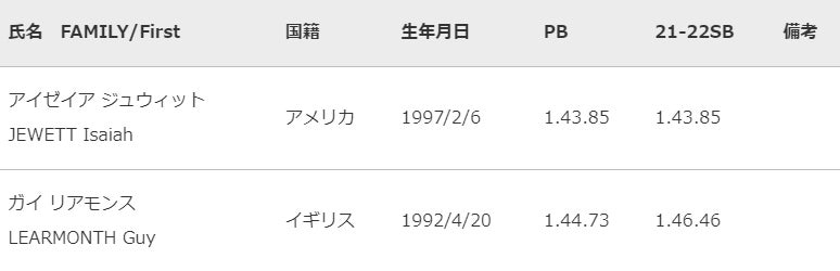 〇男子400mには、100m 9.86、200m19.70の自己ベストを持ち、東京2020オリンピック4×400mリレーで金メダルを獲得したマイケル ノーマン(アメリカ)が東京五輪の雪辱を果たすレースとなるか。