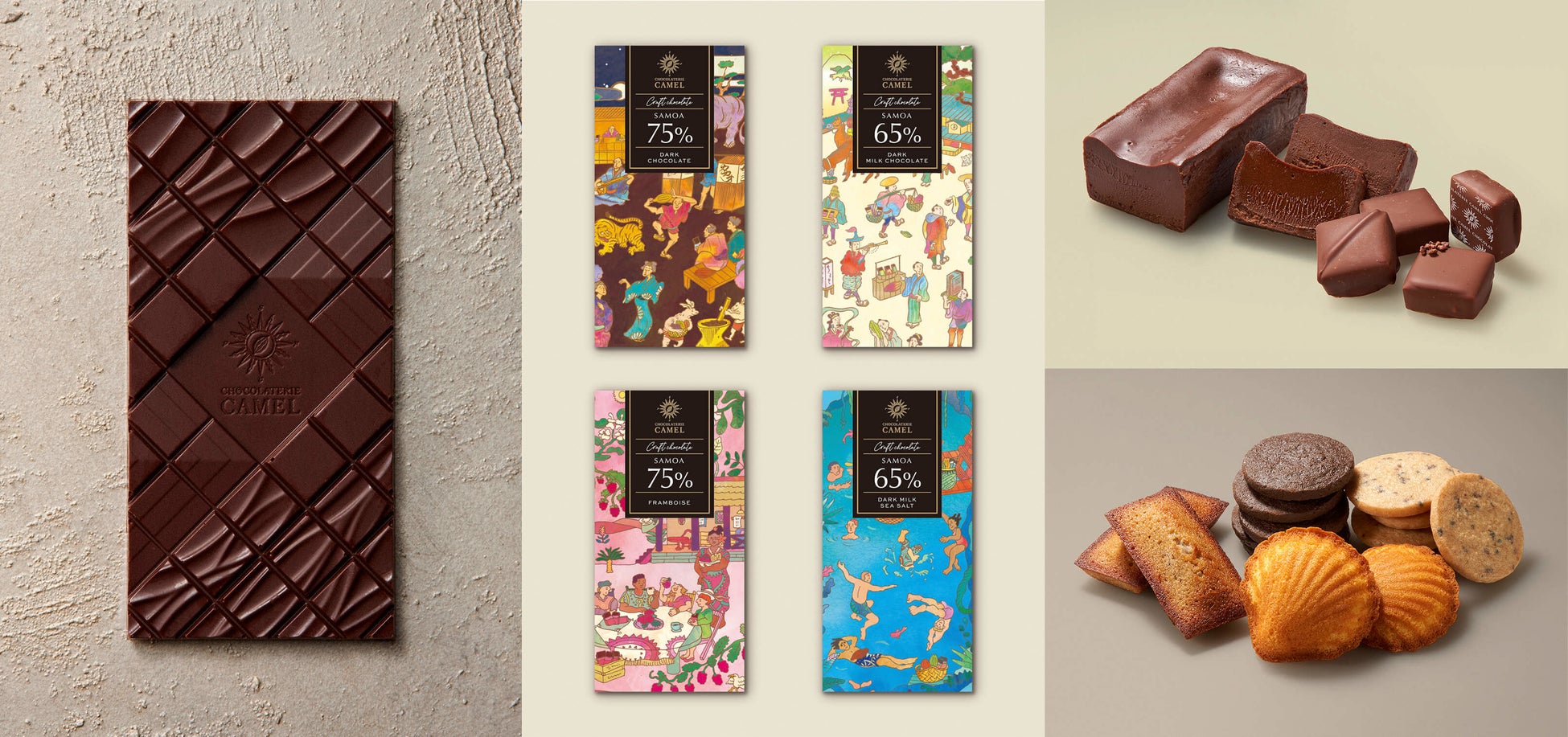 「ショコラトリーキャメル」で使用する主なカカオ豆は、産地とのつながり、自然や環境に配慮する取り組みを通して巡りあったサモアのカカオ農園「VA‘AI KOLONE FARMS(ヴァアイ コローン ファームス)」より譲り受けています。生産者が愛情を込めて栽培した想いを受け継ぎ、チョコレート職人の感性でカカオの個性や魅力を最大限に引き出したチョコレートに仕上げています。