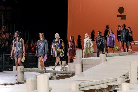 パーク・アヴェニュー・アーモリーで行われたランウェイショーは、ニューヨークの桟橋が創造性を発揮し、コミュニティを作り上げる場であったという示唆に富んだ歴史にインスパイアされた、夢の中にいるかのような幻想的な桟橋を舞台に行われました。ショーのオープニングを飾ったのは、コーチ桟橋に人々が通りがかり、その場に居合わせるという偶然の瞬間に互いが触れ合いながら、思い思いに過ごす演出。ロマンスと可能性を感じさせる日の出のセットの中に、ニューヨークの桟橋やビーチのようなこの街のエネルギーに根ざした現実逃避を思わせる幻想的なコーチ ワールドが広がりました。