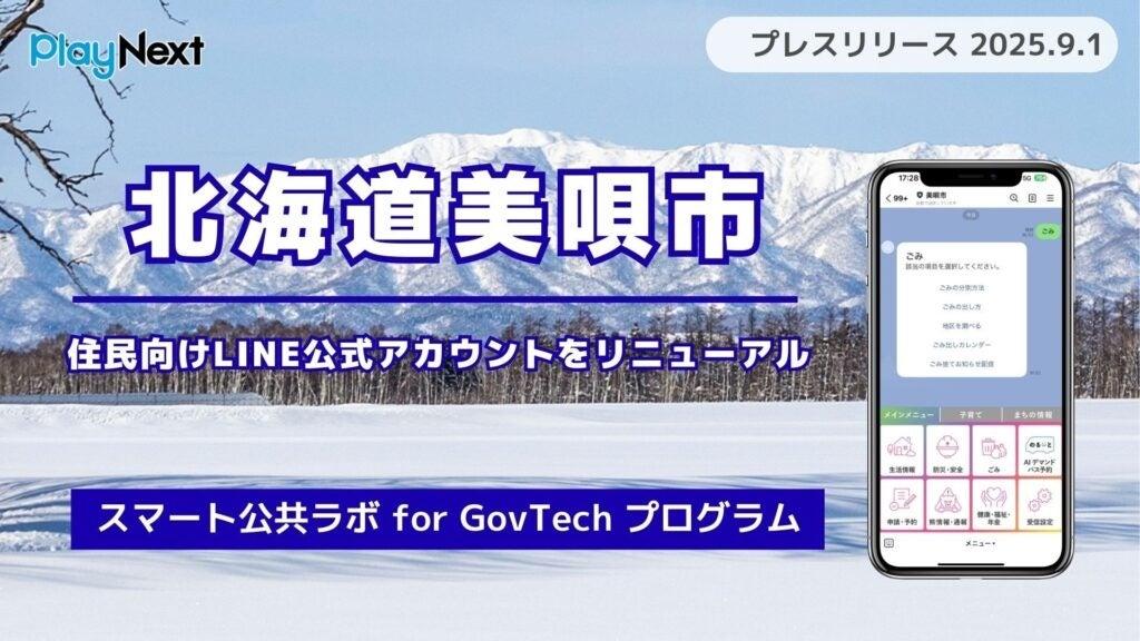 プレイネクストラボ株式会社(本社:東京都品川区、代表取締役:柏 匠、以下 「プレイネクストラボ」)は北海道美唄市(以下「美唄市」)LINE公式アカウントのリニューアルに「スマート公共ラボ for GovTechプログラム」を活用し、2025年9月1日(月)より一般公開したことをお知らせします。