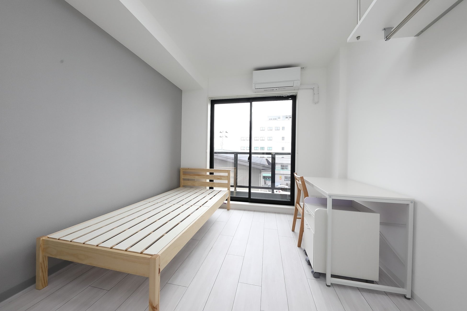 個室内はプライベートを重視したバス、トイレ、独立洗面化粧台を設置した完全個室となっています。室内にはベッド、デスク、チェア、クローゼット、洗濯機、冷蔵庫、電子レンジといった家具家電を備え付け、引越しによる手間、時間、費用の負担を減らしています。