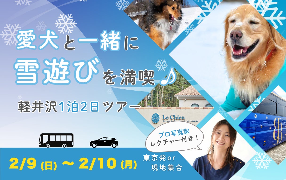 「休日いぬ部」初主催のツアーとなる今回のプランは、軽井沢にて、この時期だけの「雪遊び」を楽しめるツアーです。雪遊びを楽しむ愛犬のベストショットを撮りたい! というご要望にお応えし、ペット写真家が特別にご同行。愛犬のかわいい瞬間を写真に残せるよう、レクチャーしていただけます。