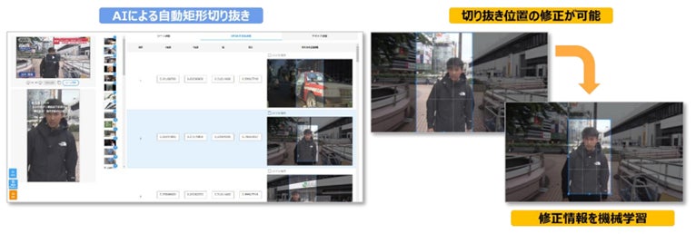 切り抜き箇所は編集者が手動で修正することもできる。その修正情報を機械学習させることで切り抜き位置の精度向上が可能。