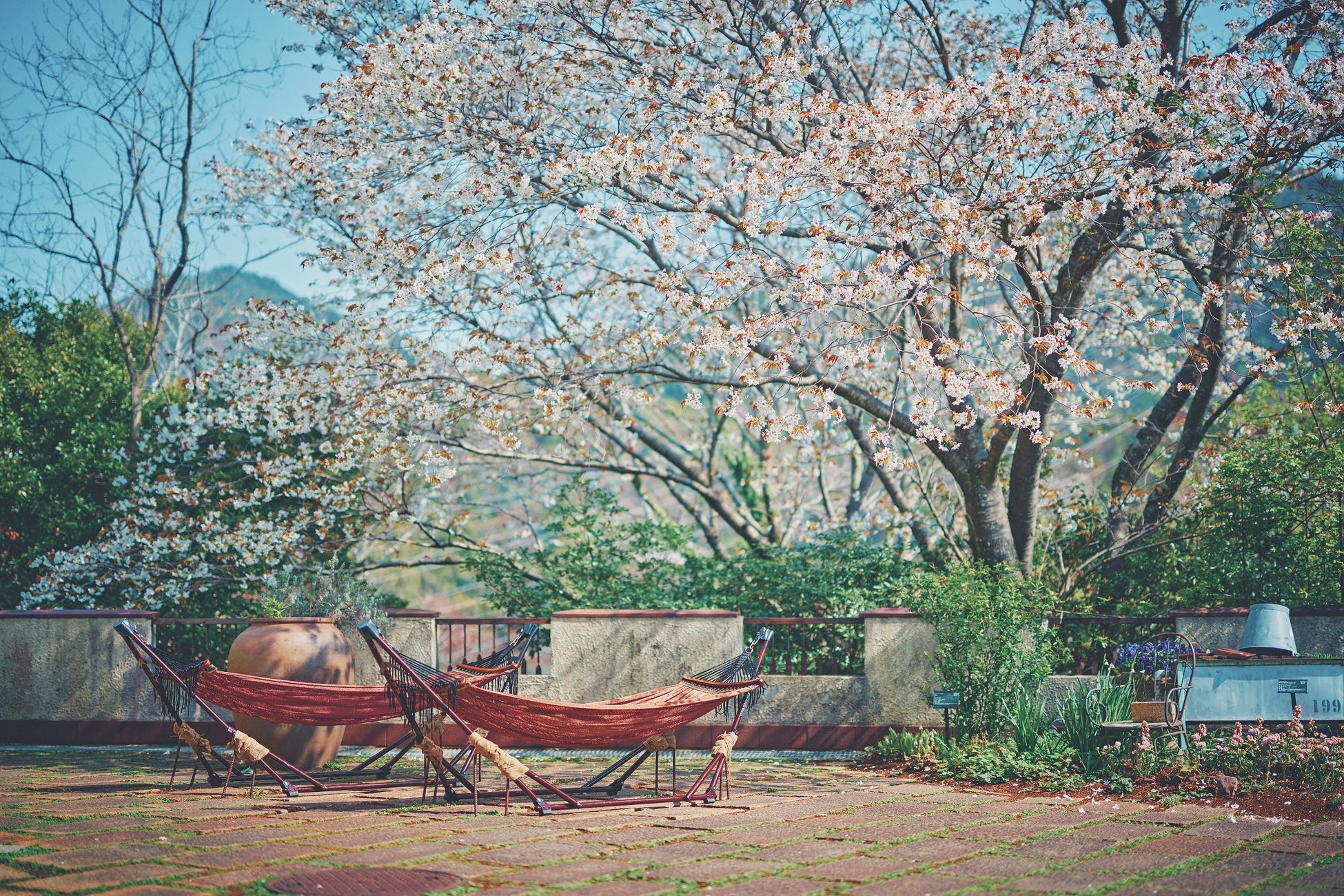 ・フレグラントガーデンの山桜とハンモック