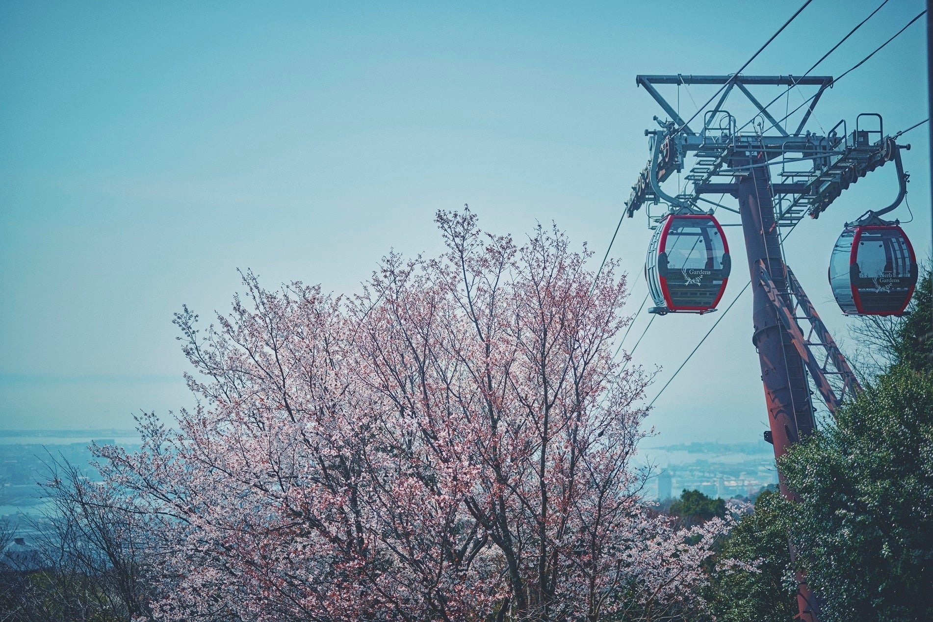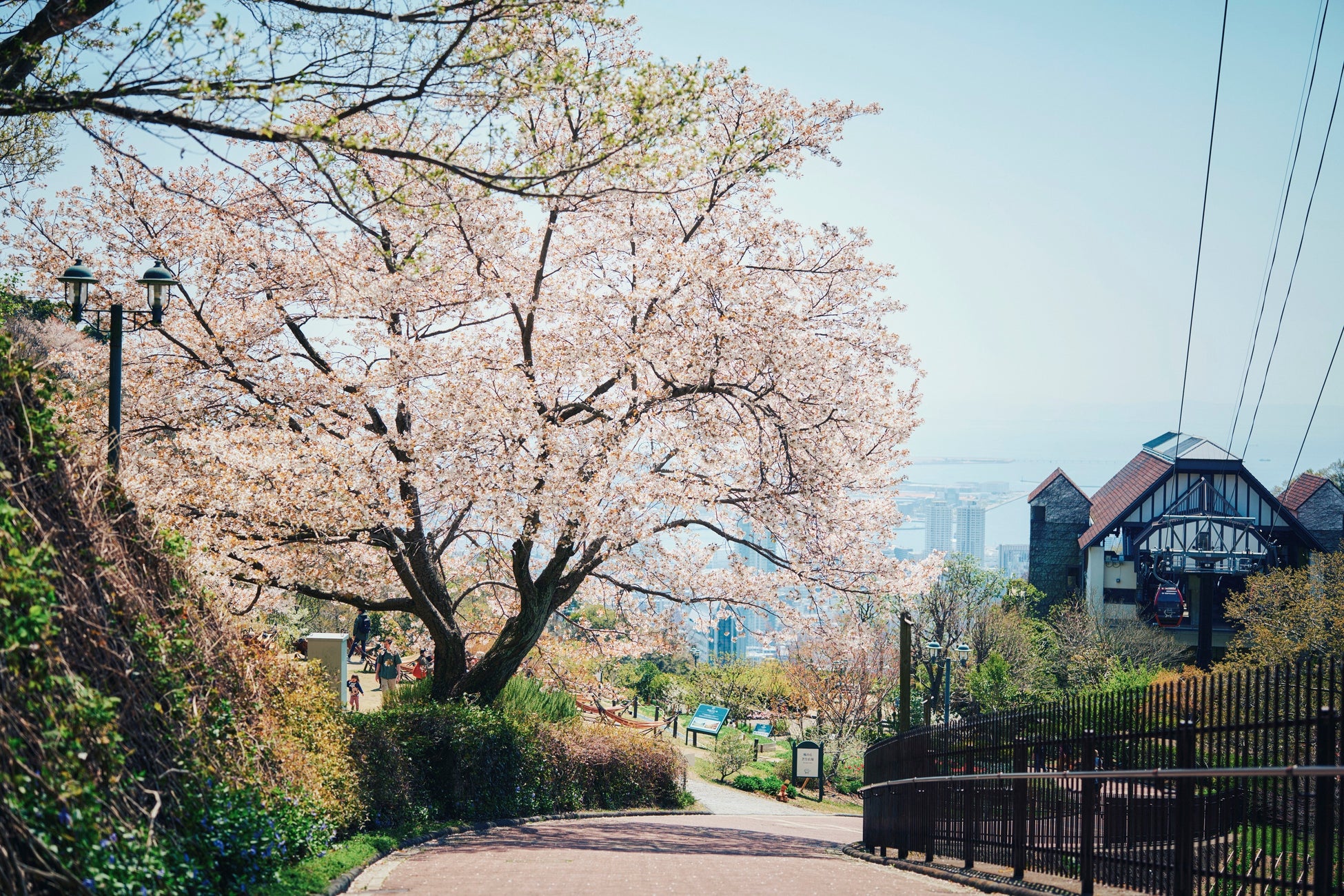 標⾼約400mの⼭上に位置し、港町神⼾の街並みが⼀望できるリゾート施設「神⼾布引ハーブ園/ロープウェイ」(運営:神⼾リゾートサービス株式会社)には、風情ある山桜が点在しています。ゆったりと散策をしながら、春の花々や様々なロケーションでお花見をお楽しみいただける「桜の名所」です