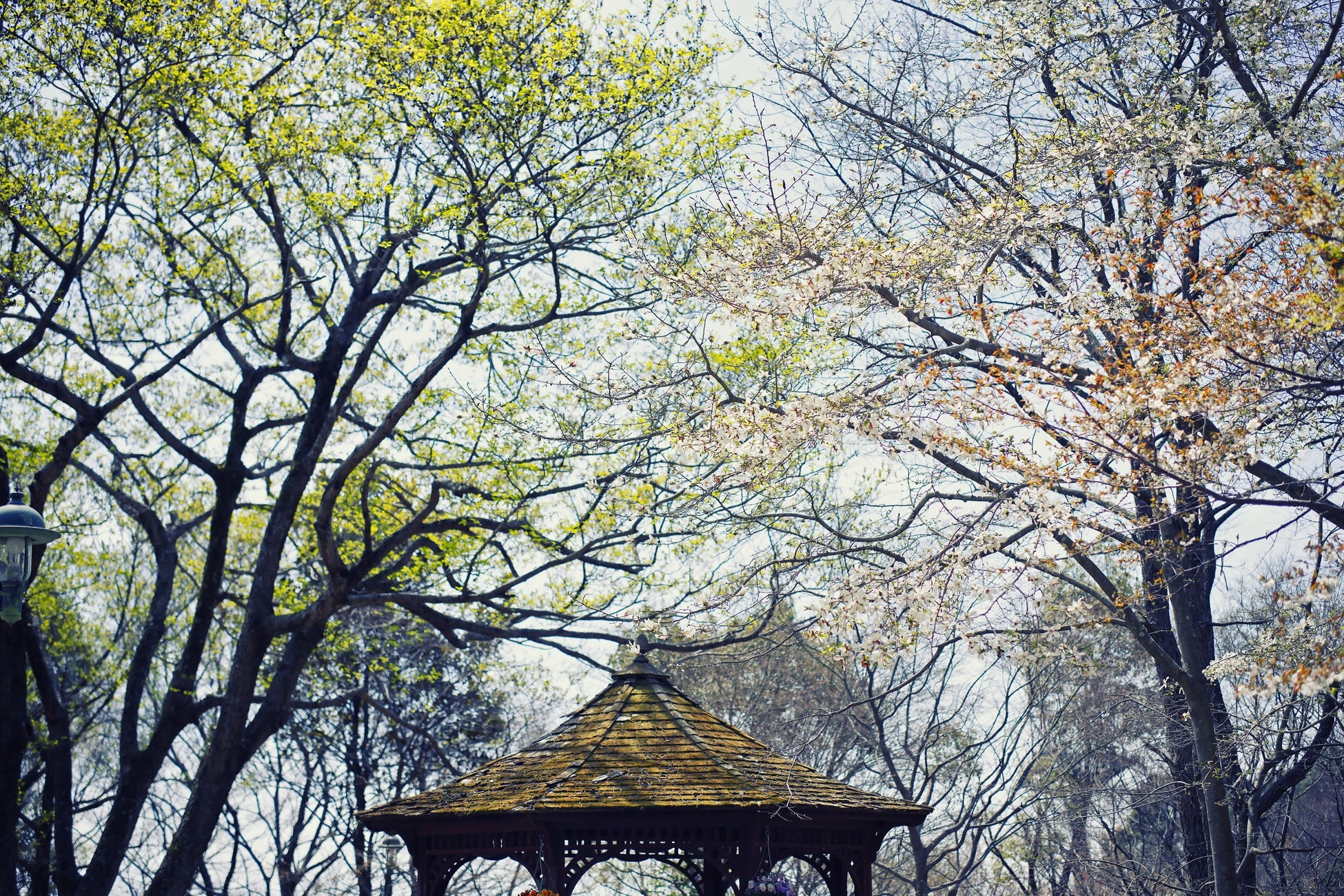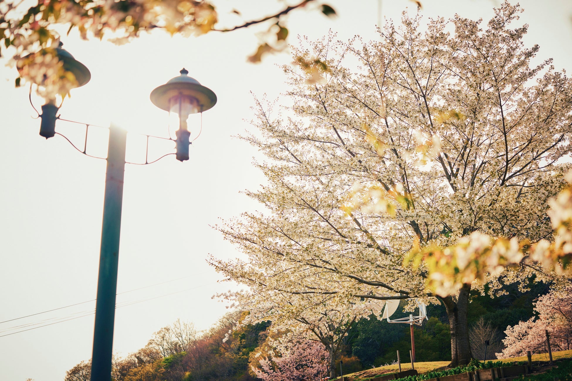 花と葉を同時に咲かせる「山桜」。ガーデン各所が淡くエレガントな雰囲気に包まれます