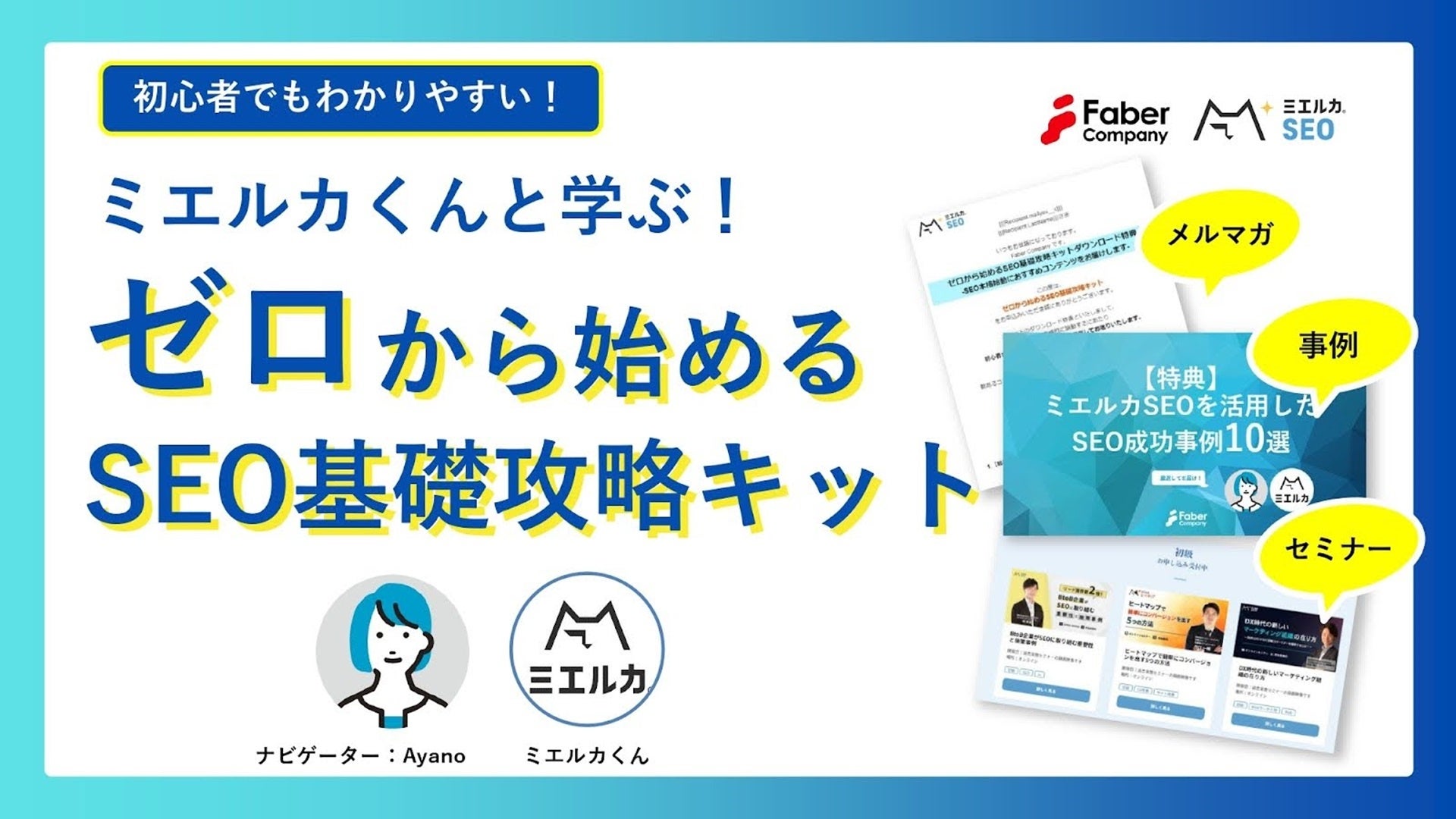 約1,800社のWebマーケティングを支援してきた実績のある株式会社Faber Company(ファベルカンパニー/本社:東京都港区、代表取締役:稲次正樹・古澤暢央)は2024年6月26日(水)、「ミエルカくんと学ぶ!ゼロから始める SEO基礎攻略キット」を無料公開いたしました。