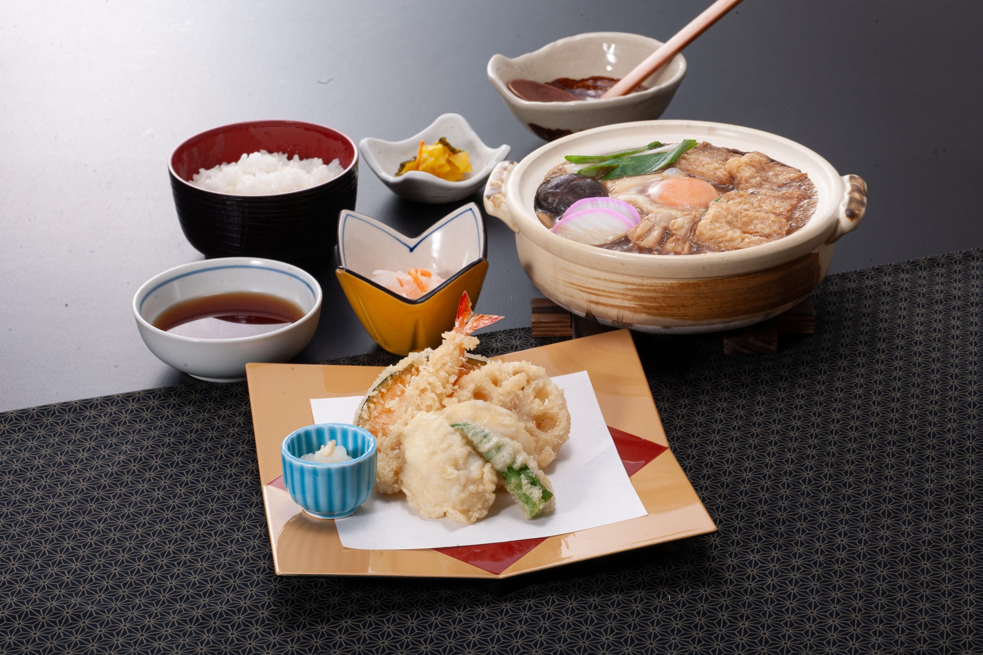 輪島市産天然まふぐを天ぷらにし、そのふっくらした鮮度の良いまふぐならではの食感、旨味を感じて戴くと共に、サガミ自慢 のみそ煮込をセットしたおすすめの逸品です。