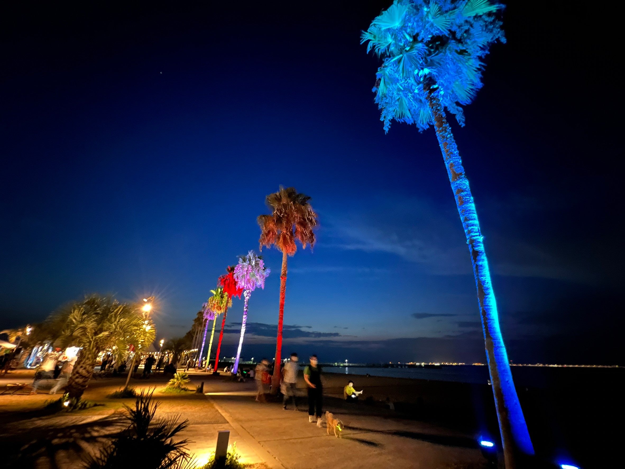 大阪泉州の人気観光スポットSENNNAN LONG PARK(センナンロングパーク)のシンボルであるヤシの木を期間限定でライトアップ!ビーチにずらりと並ぶヤシの木が、夜のビーチにカラフルに浮かび上がり、幻想的な雰囲気をお楽しみいただけます。