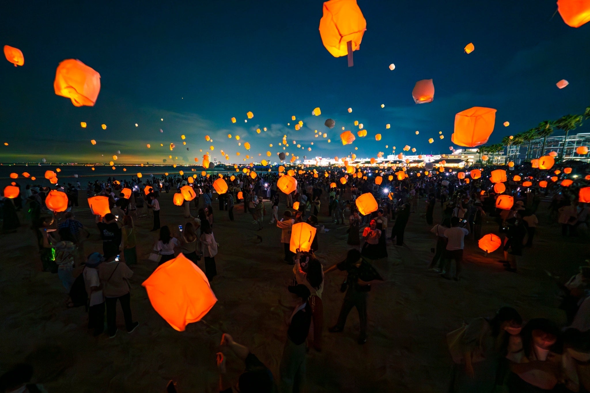 七夕の夜空を彩る、日本最大級のビーチランタンイベント!泉南市のシティープロモーションの一環として、願いをのせたビーチランタンを一斉に夜空へ打ち上げる来場者参加型イベントです。当日は1万人以上の方が集まり、ランタンが夜空に浮かぶ幻想的な光景をお楽しみいただきました。※開催終了しました