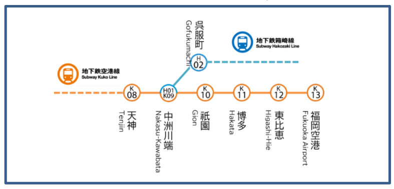 (対象駅)福岡空港、東比恵、博多、祇園、中洲川端、天神、呉服町