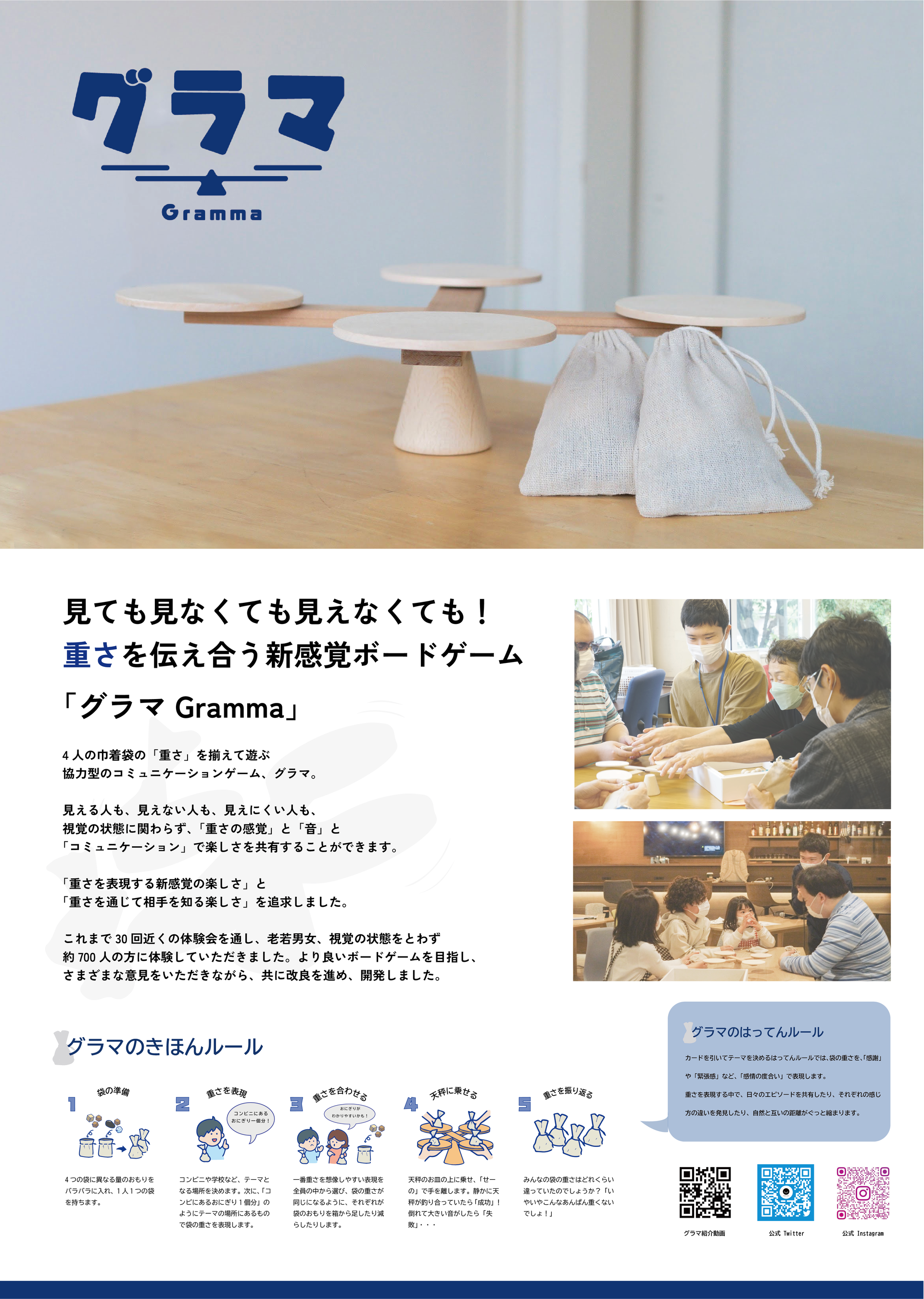 受賞した作品名:見ても見なくても見えなくても! 重さを伝え合う新感覚ボードゲーム 「グラマ Gramma」
