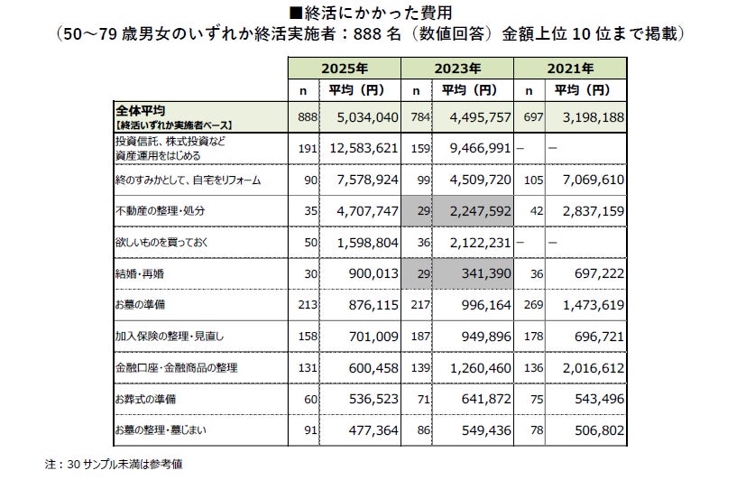 終活にかかる総額は平均約503万円と決して少額ではなく、「資産運用を始める」のほか、「家のリフォーム」「不動産の処分」など、暮らしの変化を伴う“住まいの再設計”にも費用がかかっています。未来への備えという“始める終活”だけでなく、過去を整理する“手放す終活”にもお金はかかります。「いかに整えて死ぬか」ではなく、「どう生きるか」を見つめ直す動きとしての終活が、今後ますます注目されるのではないでしょうか。