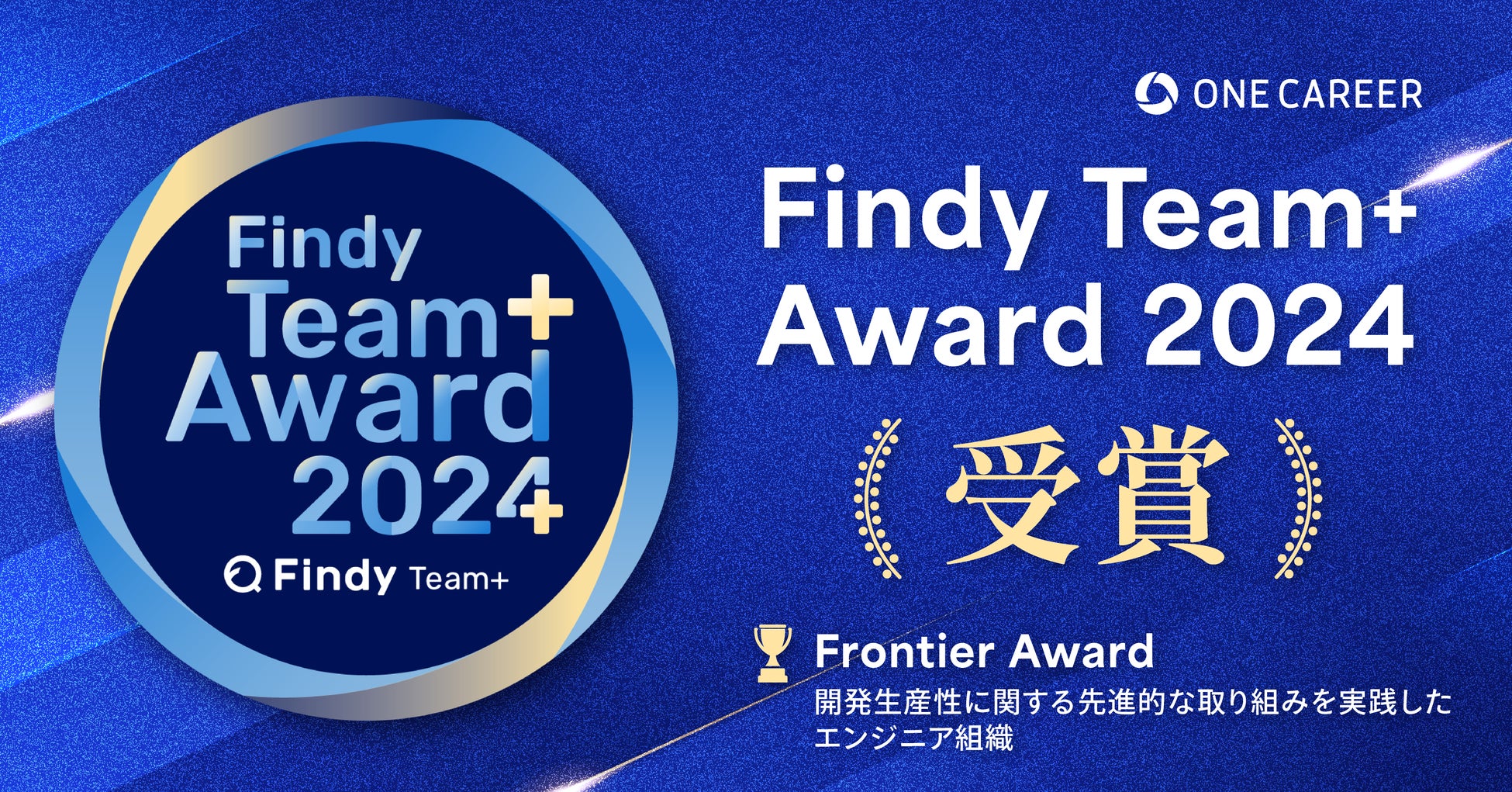 キャリアデータプラットフォーム事業を運営する株式会社ワンキャリア(本社:東京都渋谷区、代表取締役社長 執行役員CEO:宮下 尚之、以下ワンキャリア)は、エンジニア組織のパフォーマンス向上支援SaaSを提供するファインディ株式会社が運営する「Findy Team+ Award 2024」にて、当社の共通基盤開発チームが「Frontier Award」を受賞しました。当社の「Findy Team+ Award」の受賞は、今年で3年連続となります。