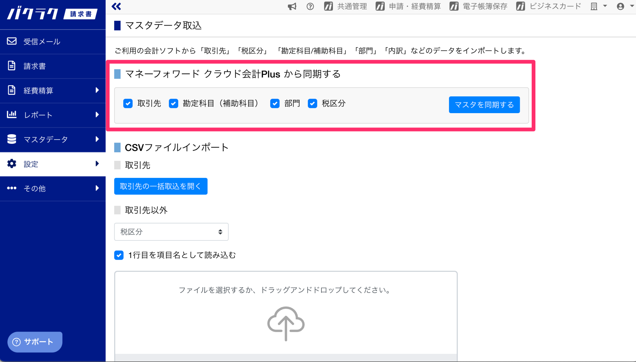 ・マネーフォワード クラウド会計Plusに登録されている以下マスタデータを、バクラク請求書に同期する