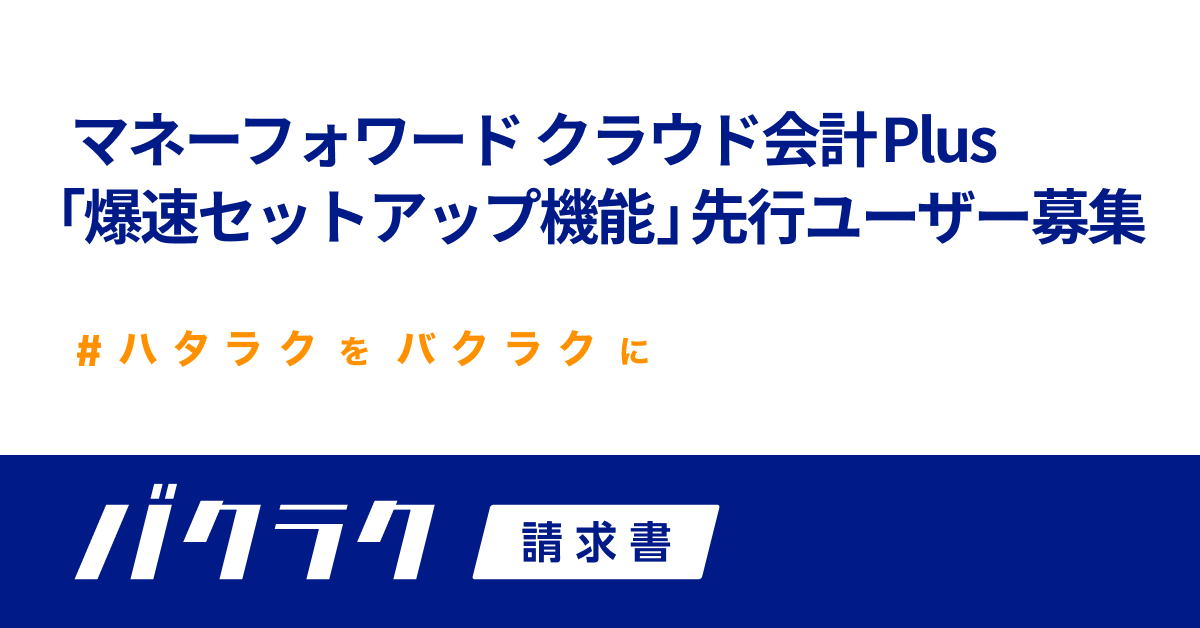 バクラク請求書、マネーフォワード クラウド会計Plusユーザー向け「爆速セットアップ機能」を提供予定。先行体験ユーザーを限定募集