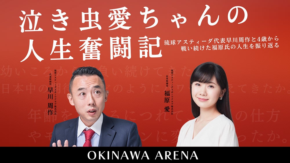 福原愛氏をお招きし、オリンピックの思い出や幼い頃から背負い続けて日本中の期待をどのように、パワーに変え結果にしてきたのか、役員に就任し琉球アスティーダにて実現したいことなど、過去から未来への展望を福原氏と琉球アスティーダ代表早川が対談。
