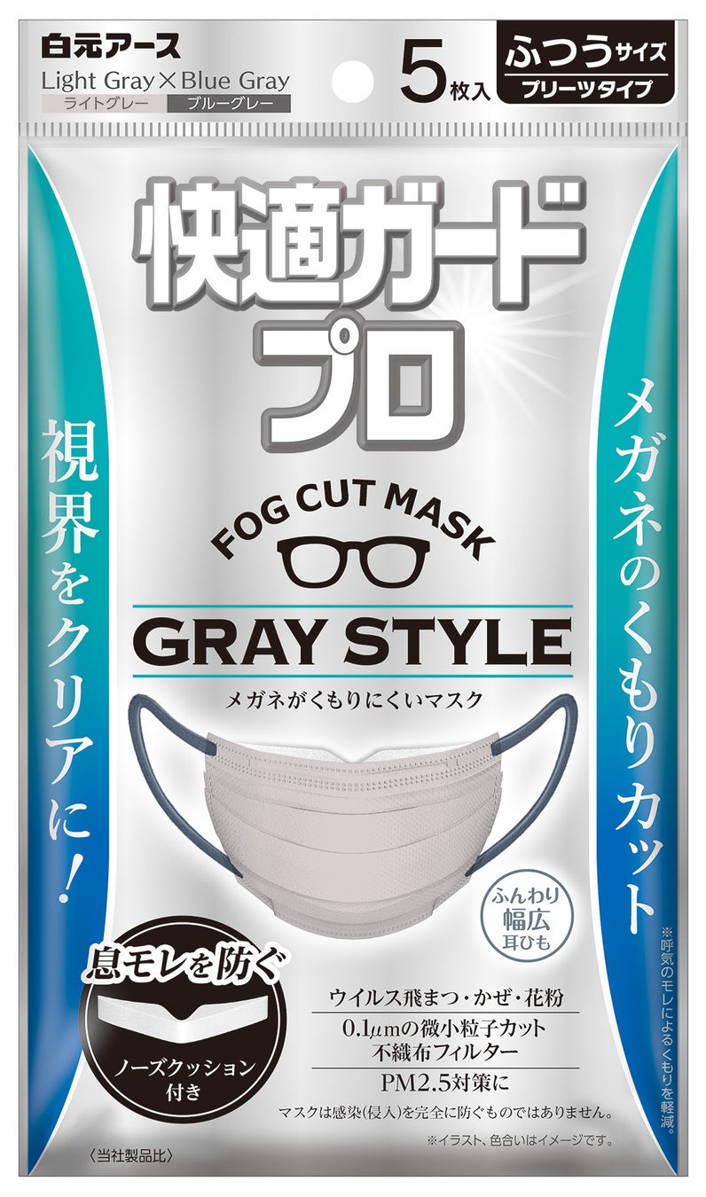 白元アース株式会社(本社:東京都足立区、社長:吉村一人)は、ノーズクッションで息モレを防いでメガネのくもりをカットし、視界をクリアにするマスク「快適ガードプロ プリーツタイプ」にバイカラー※タイプの『同 ふつうサイズ グレースタイル5枚入』を8月26日より新発売いたします。