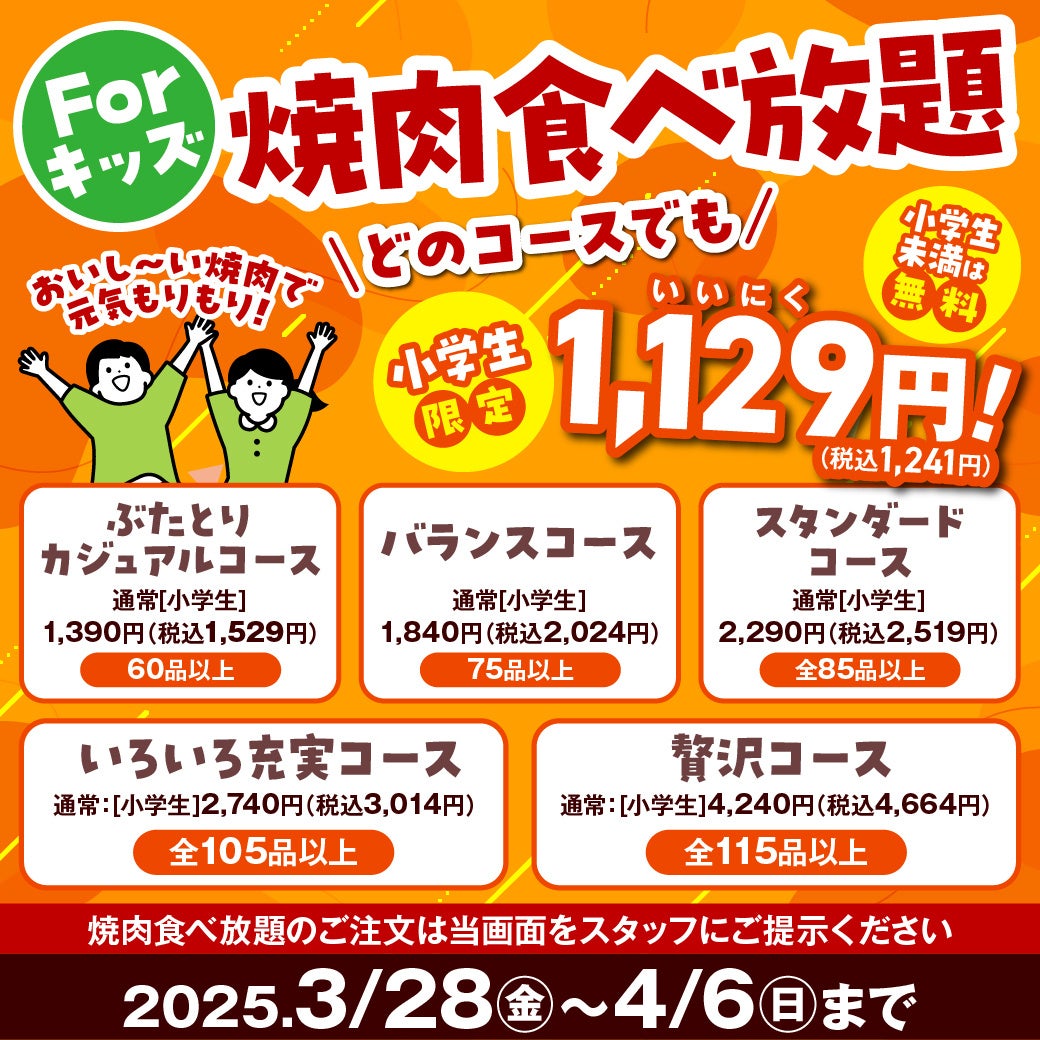 食べ盛りの小学生に思いっきり食べてもらいたい!食べ放題コースはどのコースをご注文でも「いいにく価格」で楽しめます。