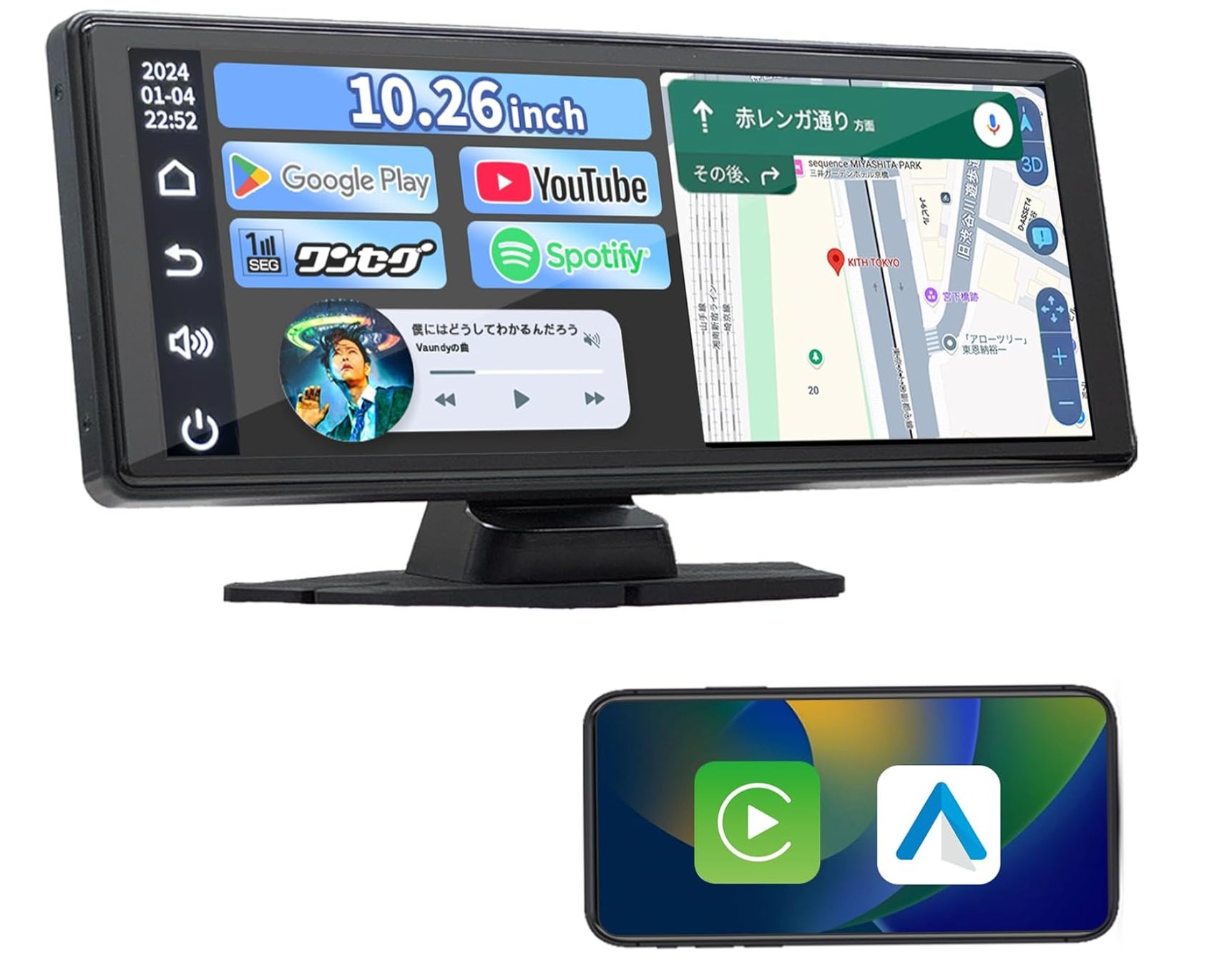 8.1インチ IPS液晶タッチパネル ワンセグ搭載地デジ視聴 ワイヤレスCarplay/AndroidAuto ミラーリング Bluetooth音楽&通話 音声コントロール 簡単取り付け。