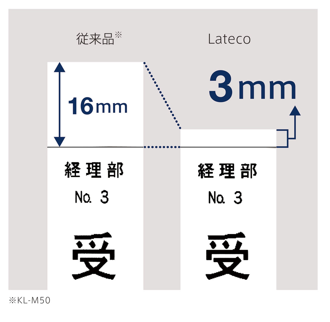 ※2 テープ単体の梱包状態にて、当社従来品(ネームランド)テープ18mm幅とラテコテープ18mm幅で比較