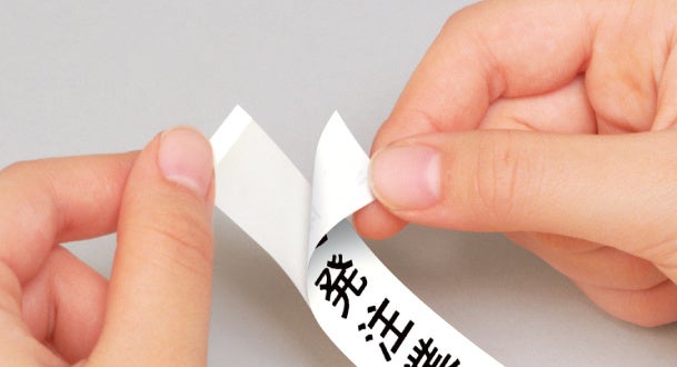 テープには、強粘着でしっかりと貼ることができる糊を使用しています。剥がす際には糊残りしにくく、ファイルの再利用もできます※5。また、ハーフカット機能を搭載し、テープ部分のみに切り込みを入れることで、スムーズに台紙から剥がすことが可能。業務効率の向上に貢献します。