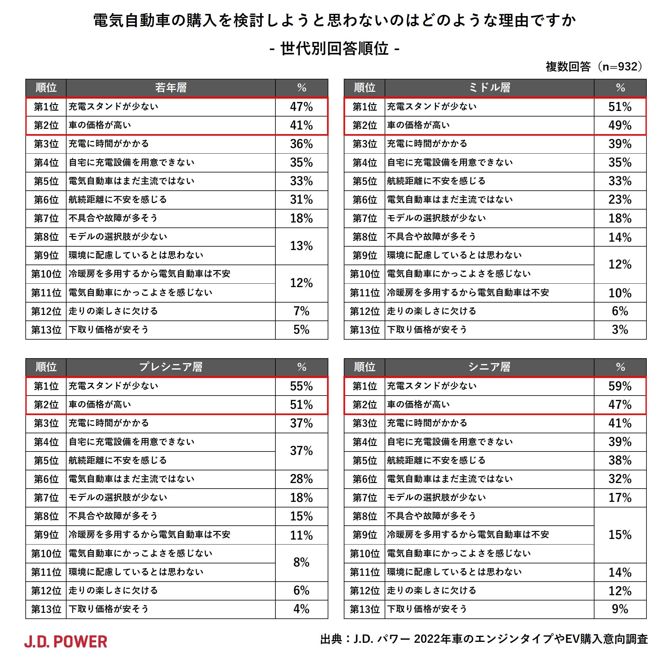 | EVを購入検討しない理由(世代別) |