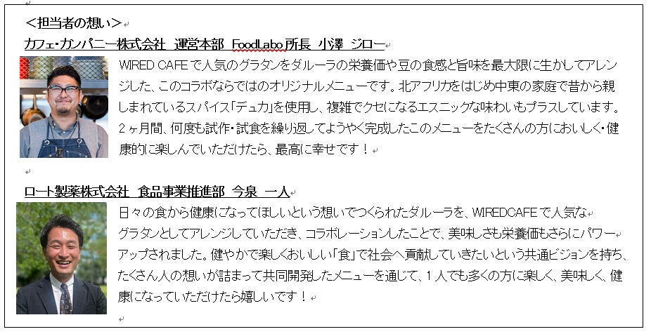 ロート製薬×カフェ・カンパニー お互いの強みを活かした健康的な「食」コラボレーション第1弾! 「2種のお豆とかぼちゃのオートミールクリーミードリア」を期間限定スペシャルメニューとして新発売!
