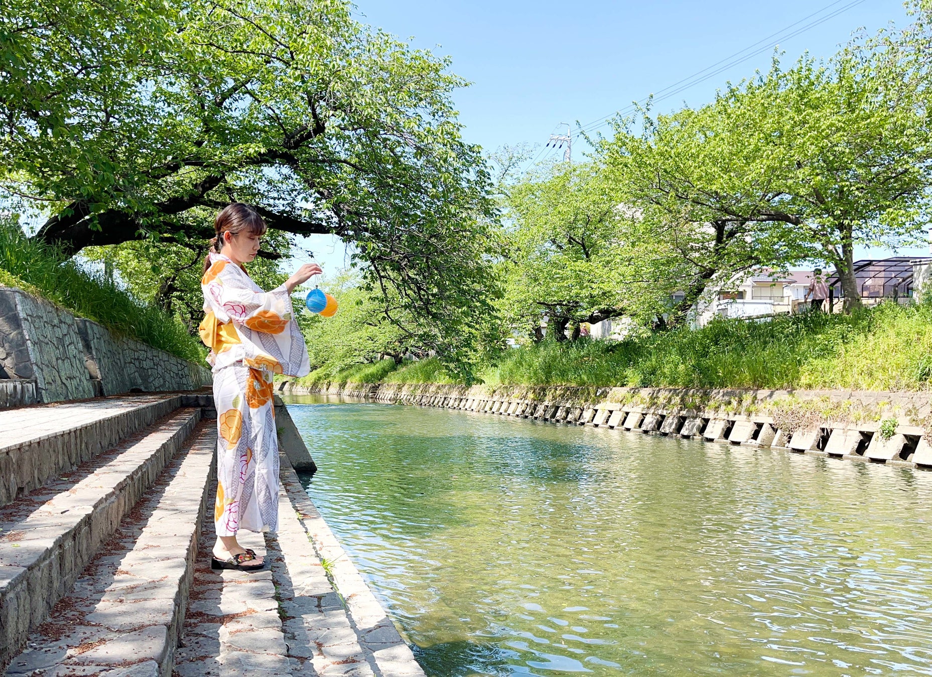 浴衣での岩倉五条川沿いのお散歩を、ぜひお楽しみください。
