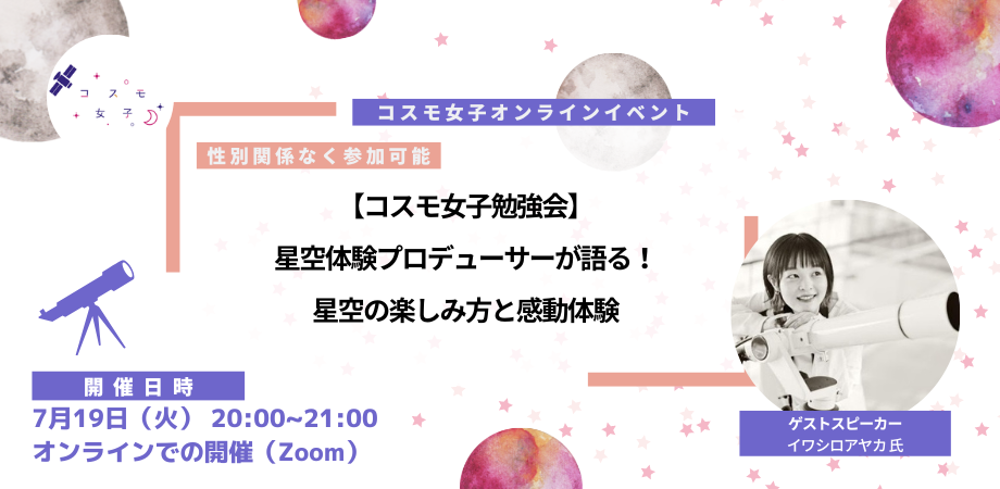 株式会社Kanatta(東京都目黒区、代表取締役社長:井口恵)が運営する「コスモ女子」は、7月19日(火)に星空の楽しみ方を学ぶ勉強会を開催します。