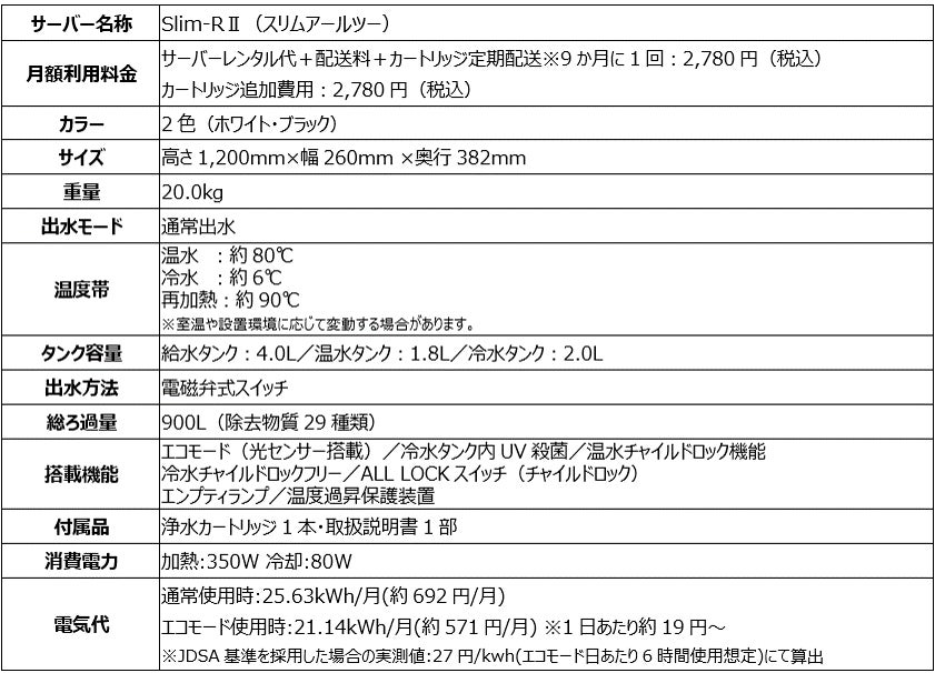 「PFAS」除去対応※1の新浄水型ウォーターサーバー業界最安級※2の月額2,780円(税込)でおいしいお水がいつでも使い放題「Slim-RⅡ」1月15日(水)より新登場
