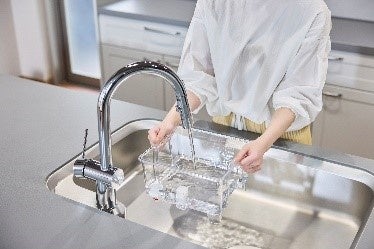 水道水に含まれるミネラル成分は残しつつ、残留塩素や有機フッ素化合物PFAS(ピーファス)の規制対象物質PFOS/PFOA、トリハロメタン、さびや濁り等、29種類の不純物を除去します。カートリッジ交換は9か月に1回なので、手間がかかりません(使用目安:約3.3L/日)。また、カートリッジの収納部分は前扉を取り外すことができるようになっており、スペースにゆとりがある状態で簡単にカートリッジ交換ができます。