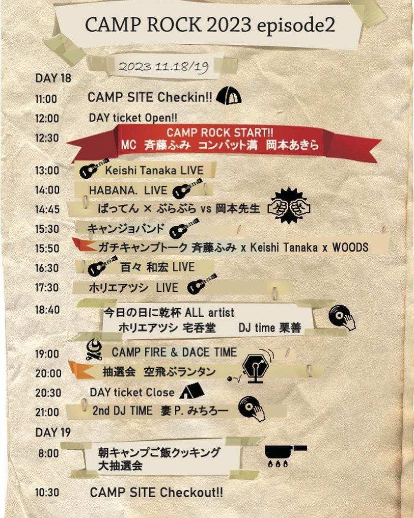 この度のCAMP ROCK 2023 episode2開催、誠におめでとうございます。自然を愛するキャンパーとロックミュージシャンが一堂に会するこの素晴らしいイベントに参加できることを、私たちキャンジョバンドは大変光栄に思っております。
