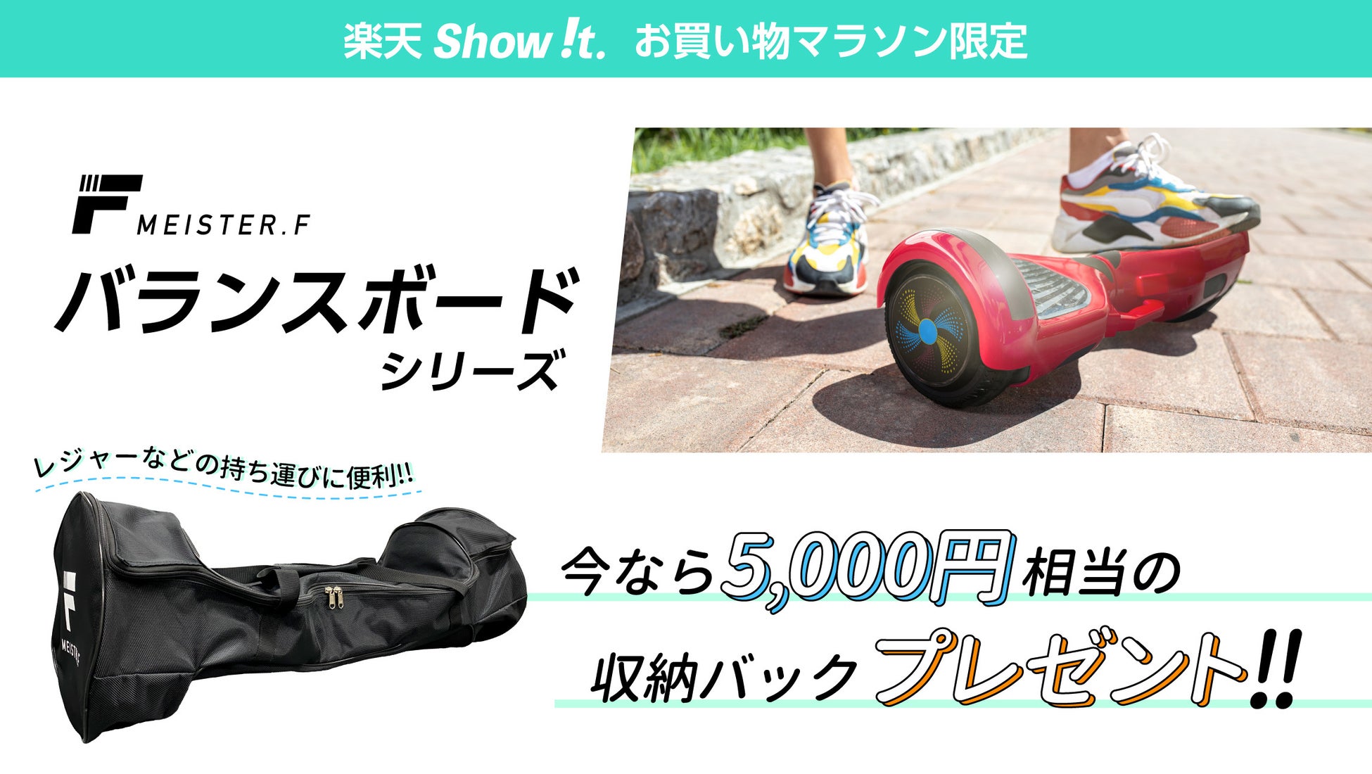楽天市場「Show !t」5月9日(月)20時開始、ポイントが最大10倍もらえる楽天お買い物マラソンに参加。新作のMEISTER.F電動バランスボードをご購入の方には、収納バックをプレゼントします。