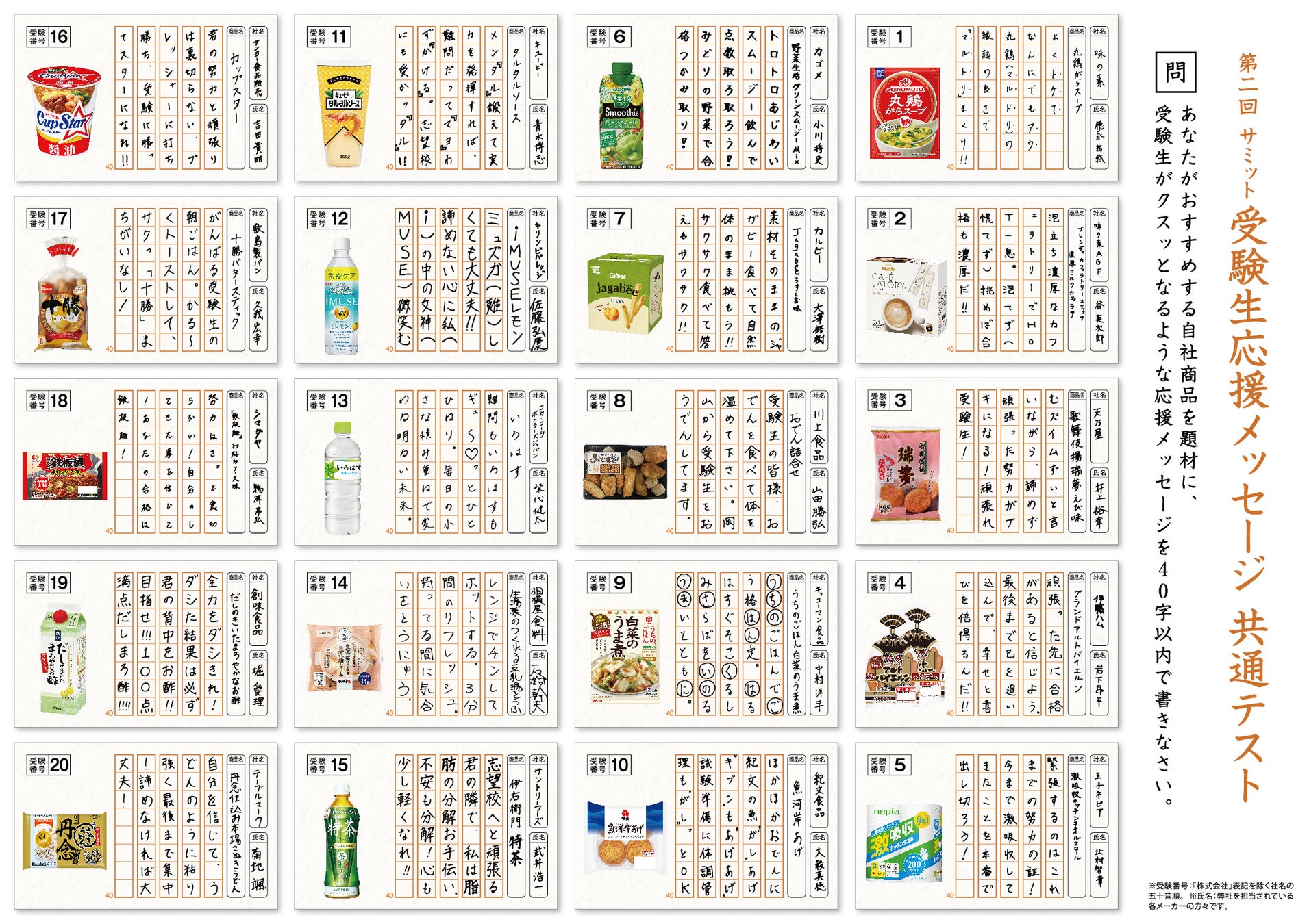サミットは、日頃お世話になっているメーカー様40社にご協力いただき、昨年に続き2回目となる「第二回 サミット受験生応援メッセージ共通テスト」を行いました。