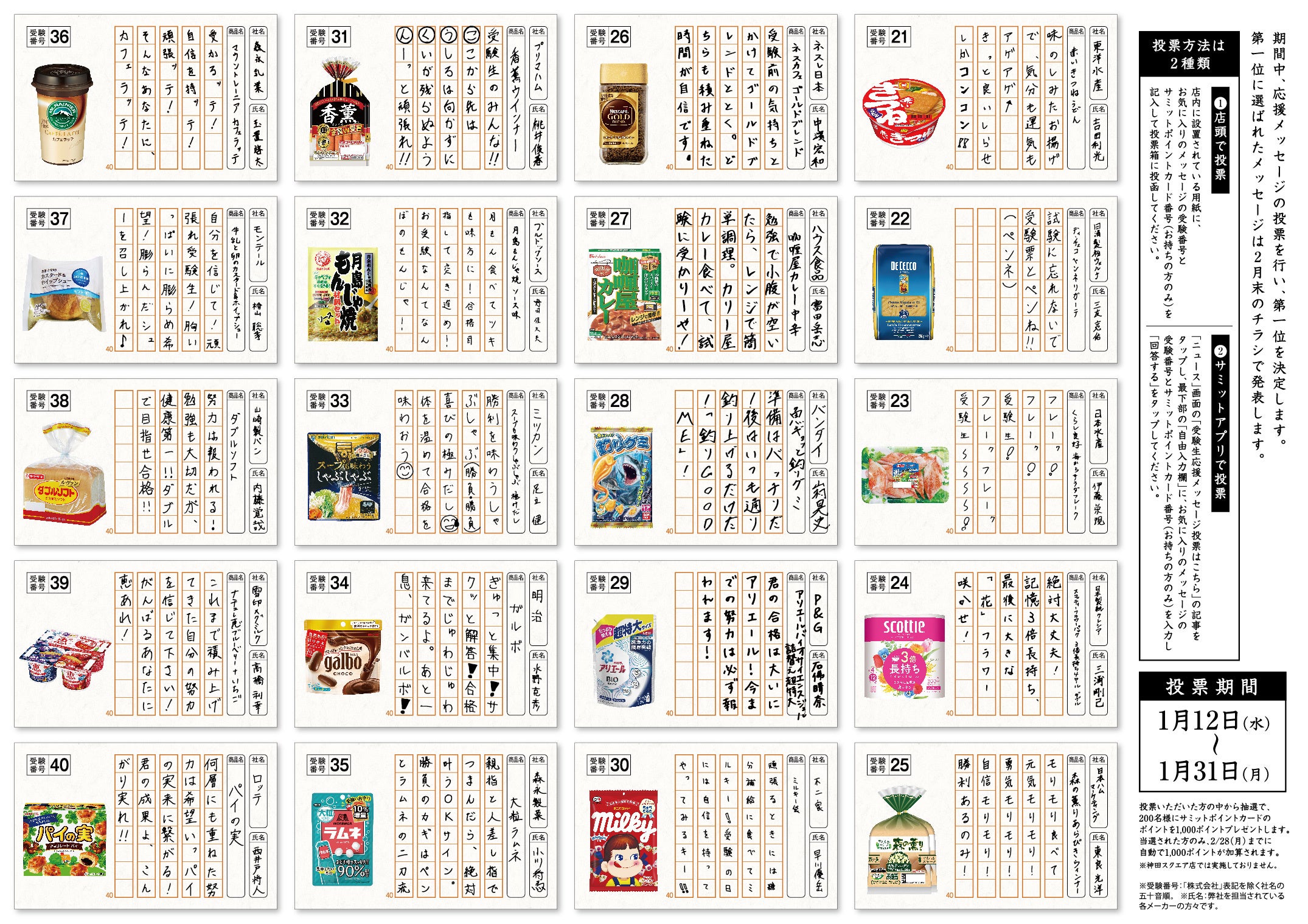 メーカー各社様に行った 「第二回 サミット受験生応援メッセージ共通テスト」 全40社の解答から人気投票で1位を選びます!