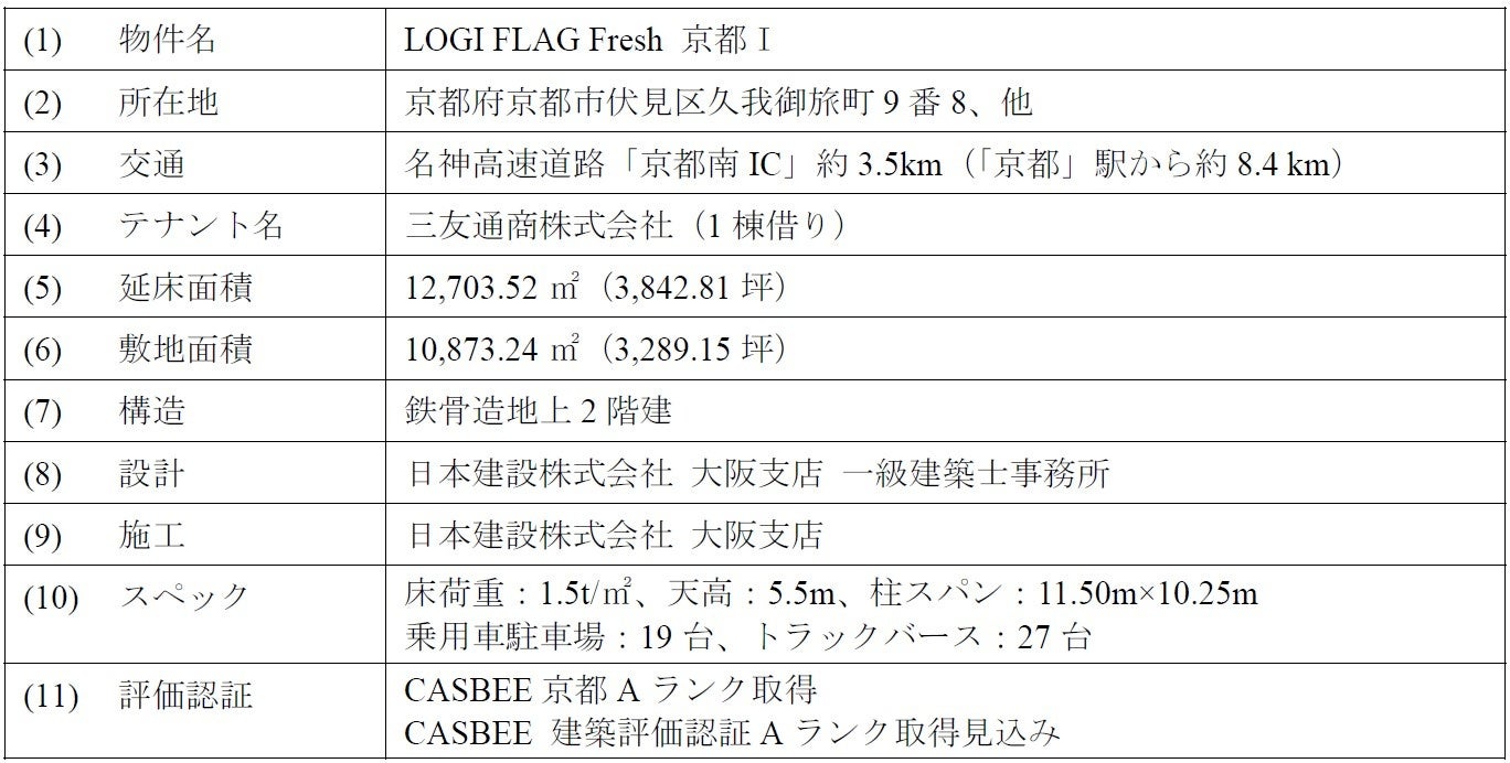 賃貸型冷蔵倉庫『LOGI FLAG Fresh 京都Ⅰ』竣工に関するお知らせ