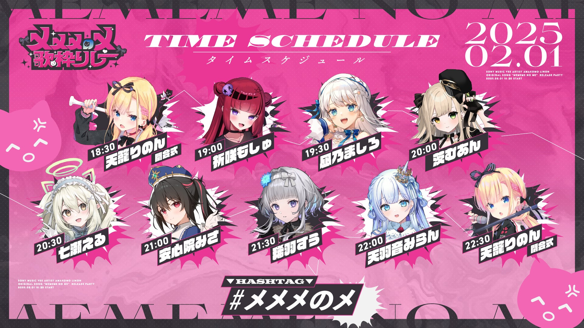 2月1日(土)18:30〜、天籠りのん公式YouTubeチャンネル&出演者各YouTubeチャンネルにて、人気VSinger&VTuberが出演する「『メメメのメ』リリース記念歌枠リレー」を開催予定!