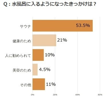 水風呂には自律神経を整える効果があるため、睡眠の質改善にも繋がるのですが、その点はあまり知られていないのか、睡眠の質改善を目的として入るひとは全体でも3%と、非常に少ない結果となりました。