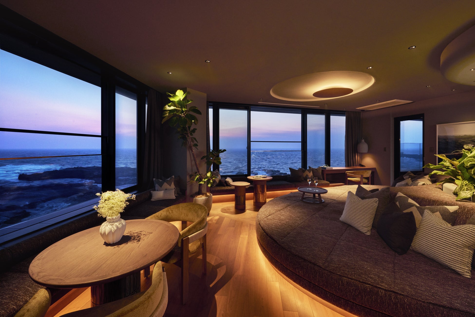 ミシュランキー2025にて、国内ブランド最多である7施設がミシュランキーを受賞した「ふふ」。その10施設目の開業として、「ふふ 城ヶ島 海風のしらべ」が誕生いたします。神奈川県三浦半島の最南端、広大で穏やかな太平洋を望む地に佇み、「ふふ」では初めての海を望むリゾート。客室は、城ヶ島の大地を映し出すかのようなインテリア。パノラマに広がる窓越しに刻々と色を変える空と海が広がり、日常を離れた幻想的な情景がご覧いただけます。全ての客室には天然温泉を完備しており、窓を開けて波音に身を委ねながら湯浴みをお愉しみいただけます。