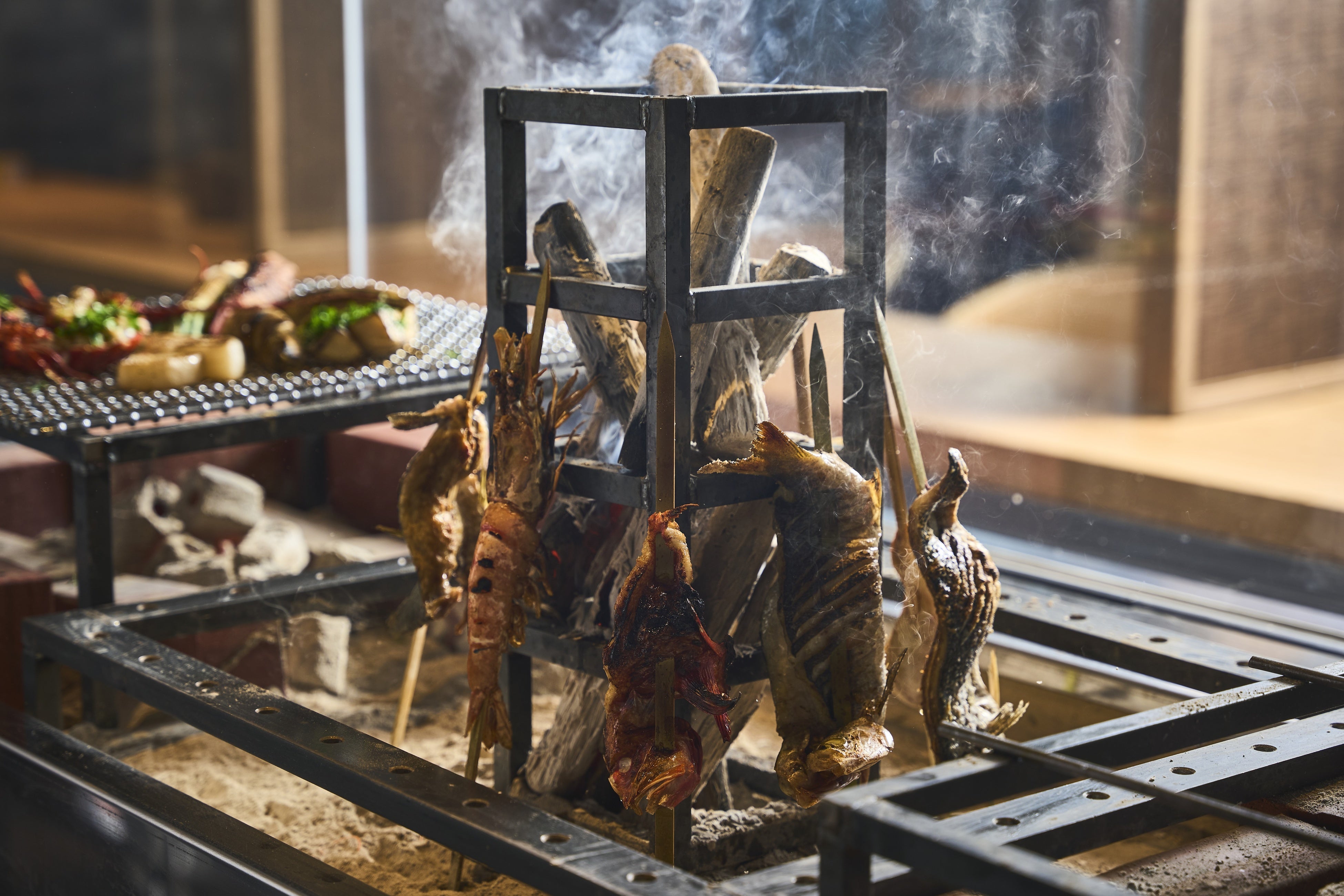 メイン料理として魚や海老の素材そのものを味わう炉端焼き料理をご用意。炭火でじっくりと焼くことで食材には香ばしい風味と深みが与えられ、格別な旨味を愉しめます。