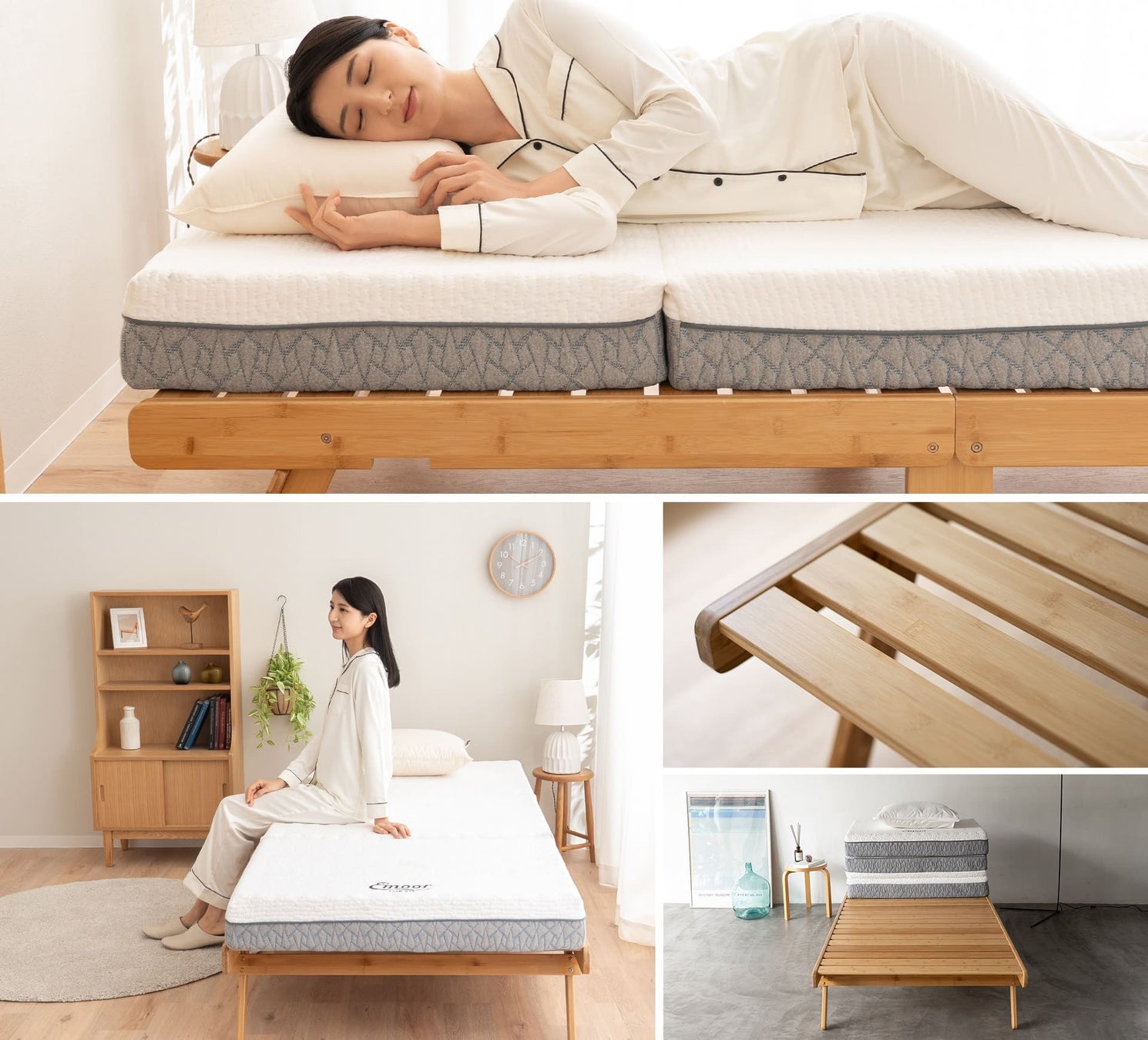 寝心地・座り心地を研究する健康家具ブランドEMOOR(エムール)が開発。天然竹の心地よさと和モダンデザインが特徴の折りたたみベッドに、より快適に使えるシングルサイズが加わりました。