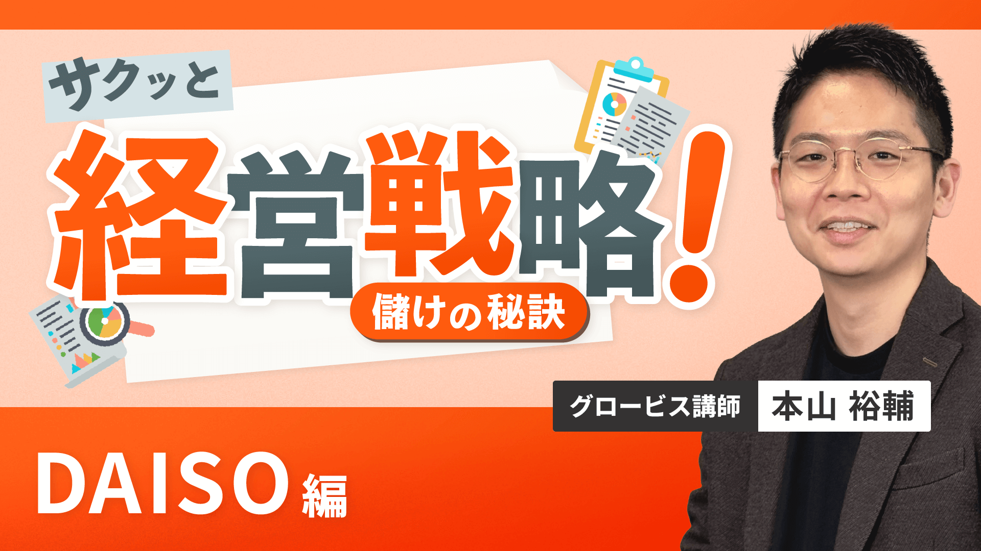 DAISOのビジネスモデルを題材に、経営戦略の基本フレームワークと儲けの仕組みを学べるコース。